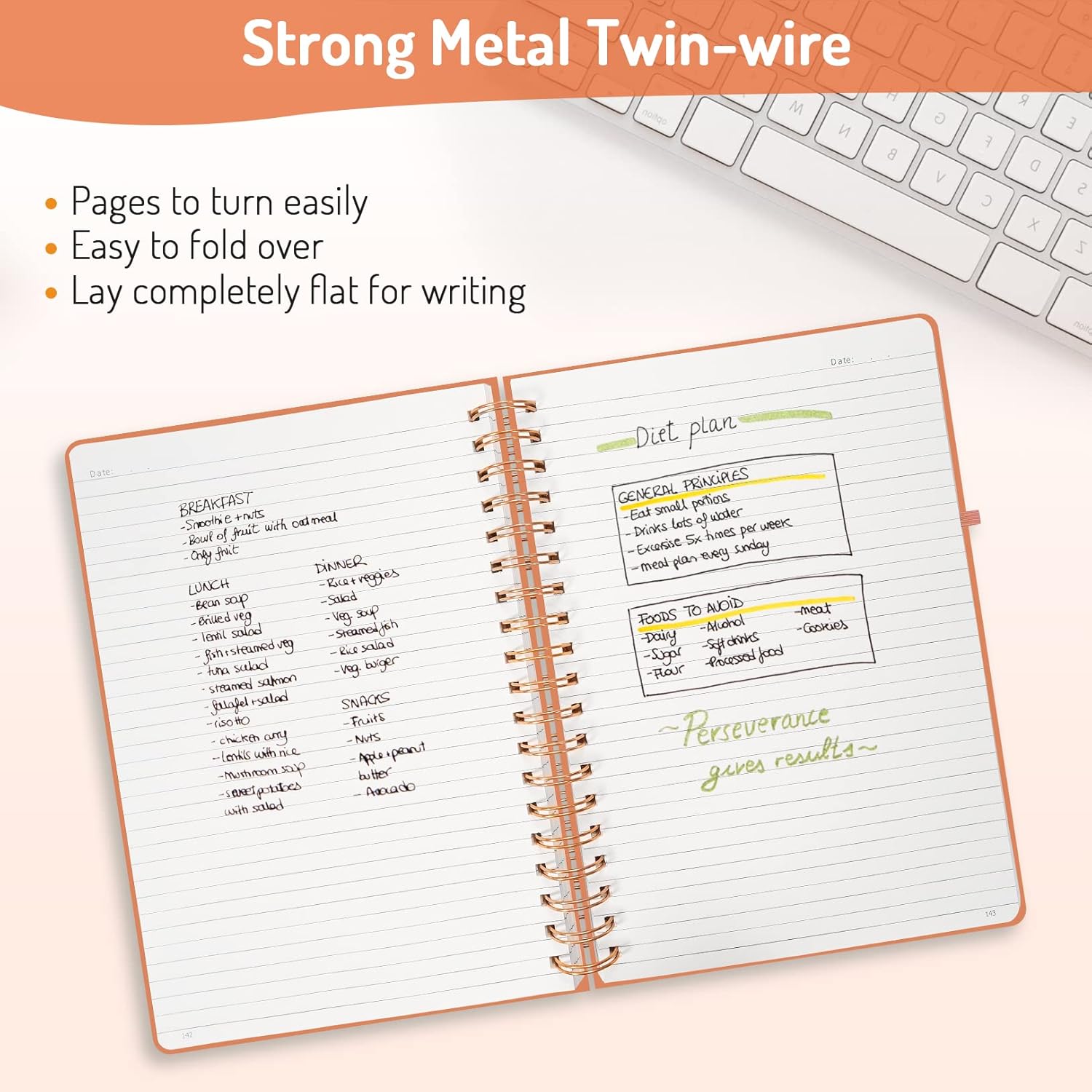 - Strong Metal Twin-wire & Durable Hardcover: Feature a super durable Golden double wire spiral binding with heavy-duty hardcover; making it easy to fold over and laying the notebook totally flat easily, giving you a better writing experience. The professional durable water-resistant hardcover will protect your journal to last for years.