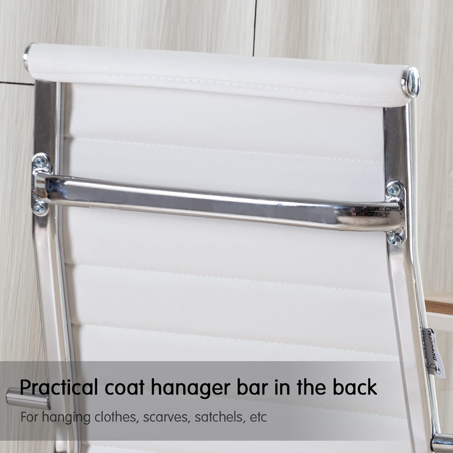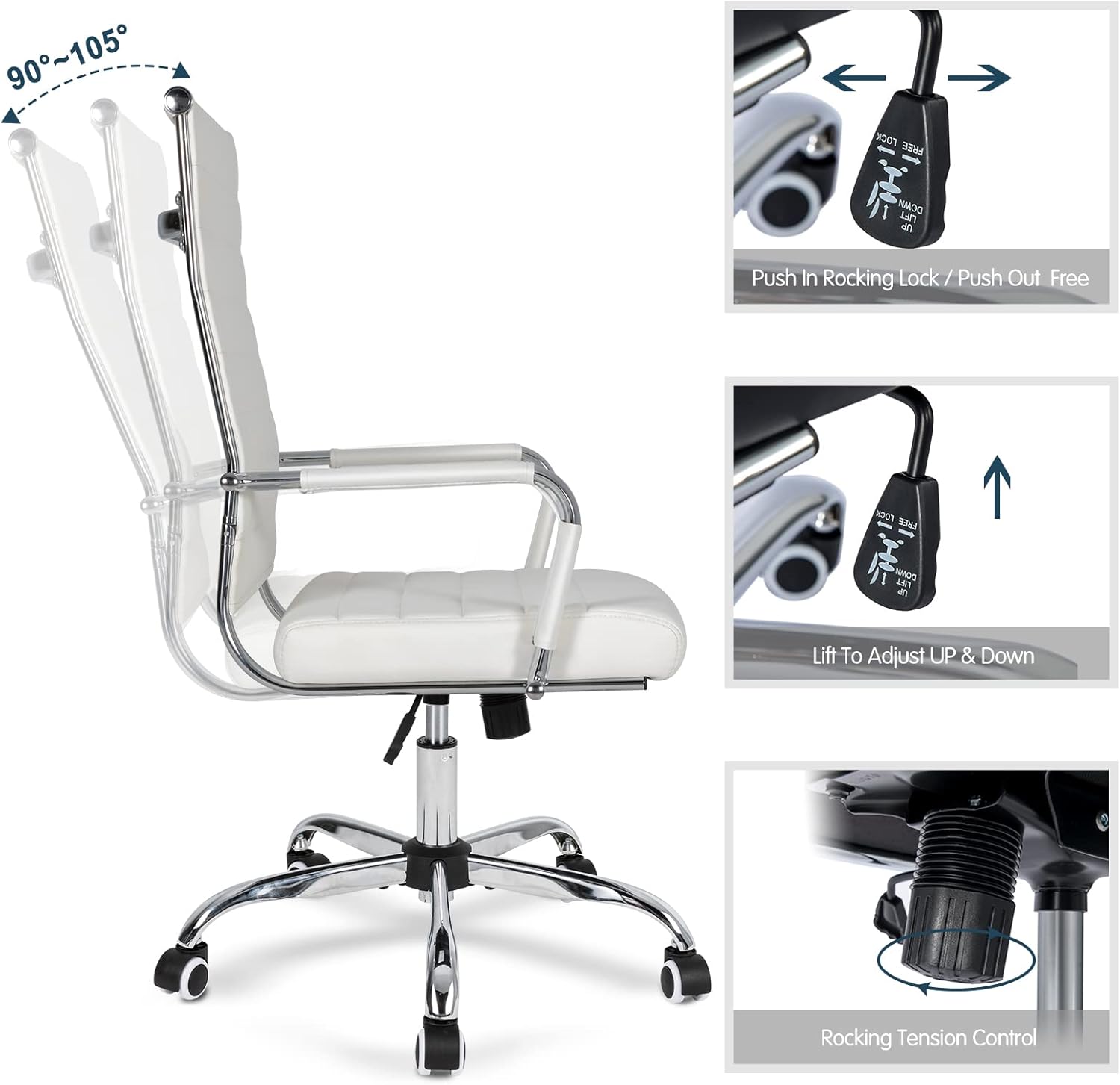Home Office Chair Ribbed, Modern Leather Conference Room Chairs, Ergonomic Office Desk Chair, High Back Executive Computer Chair, Adjustable Swivel Chair with Arms (White)