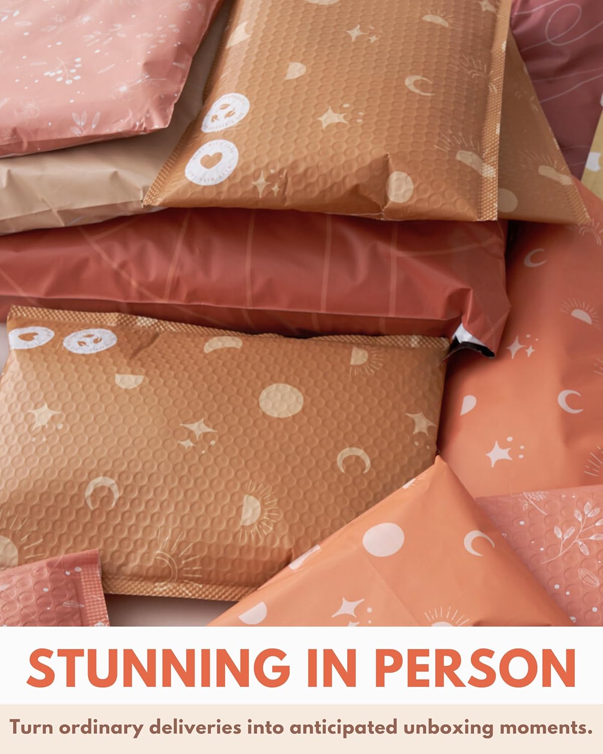 - Stylish Poly Mailers: Designer shipping envelopes featuring beautiful prints that complement your brand's aesthetics; create that perfect first impression with packaging that stands out