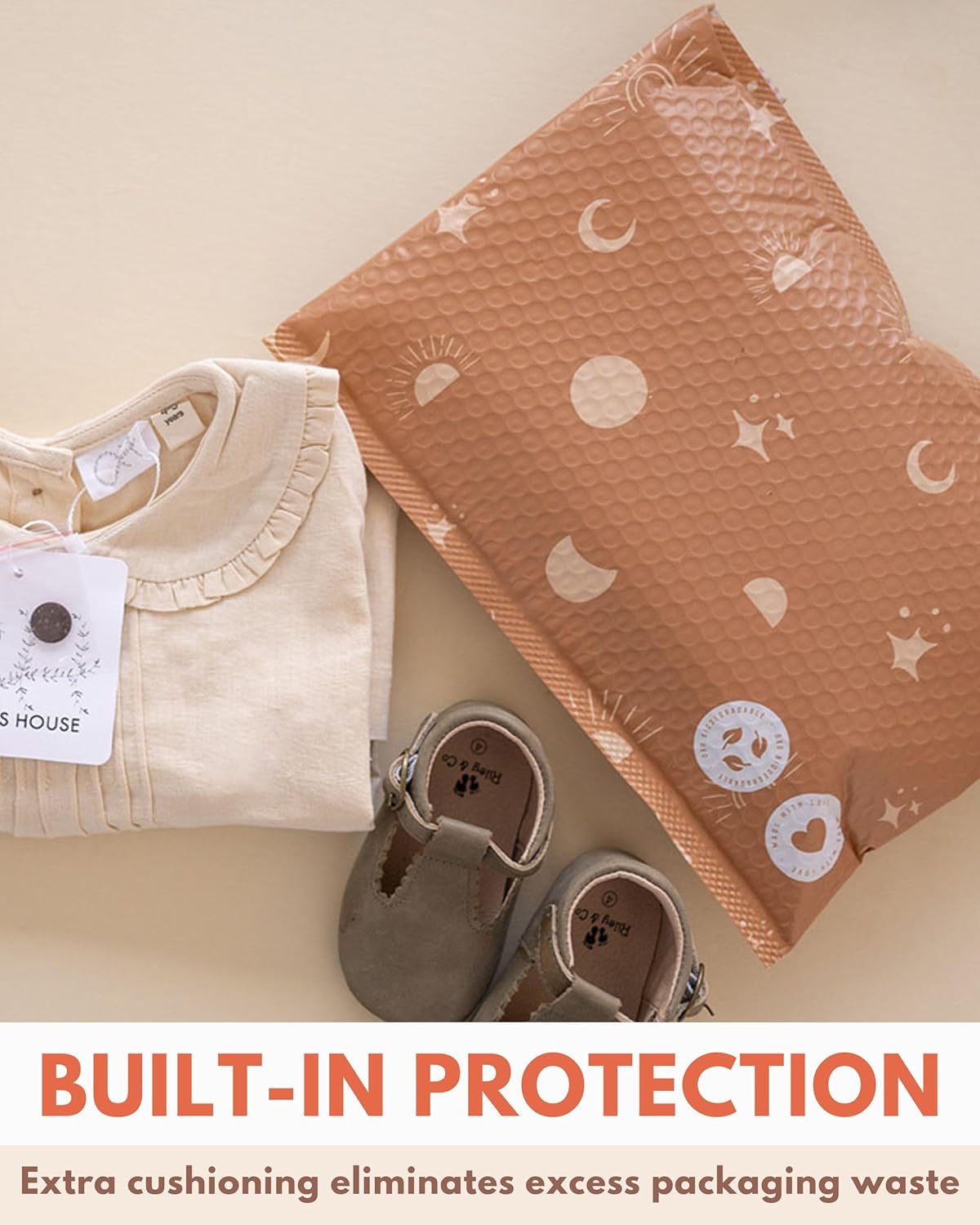 Bubble Mailers 8.5x12-25 Pack Biodegradable Shipping Bags for Accessories - Impack Self-Seal Protective Thick Mailing Envelope for Accessories & Clothing - Celestial Tan