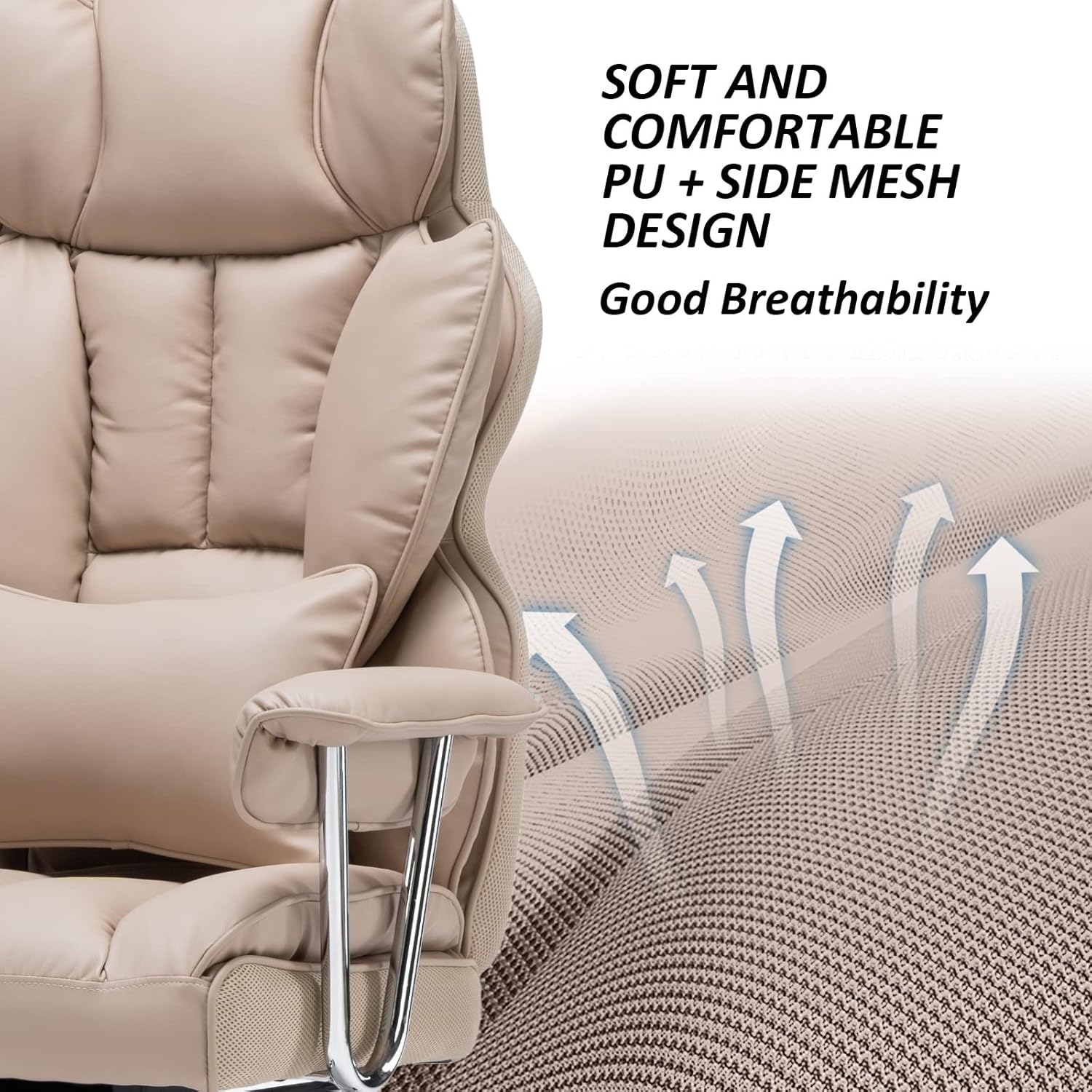 Efomao Big and Tall Office Chair 400lbs – PU Leather Executive Office Chair with Lumbar Support & Leg Rest, Heavy-Duty Computer Chair for Home Office, Dark Beige