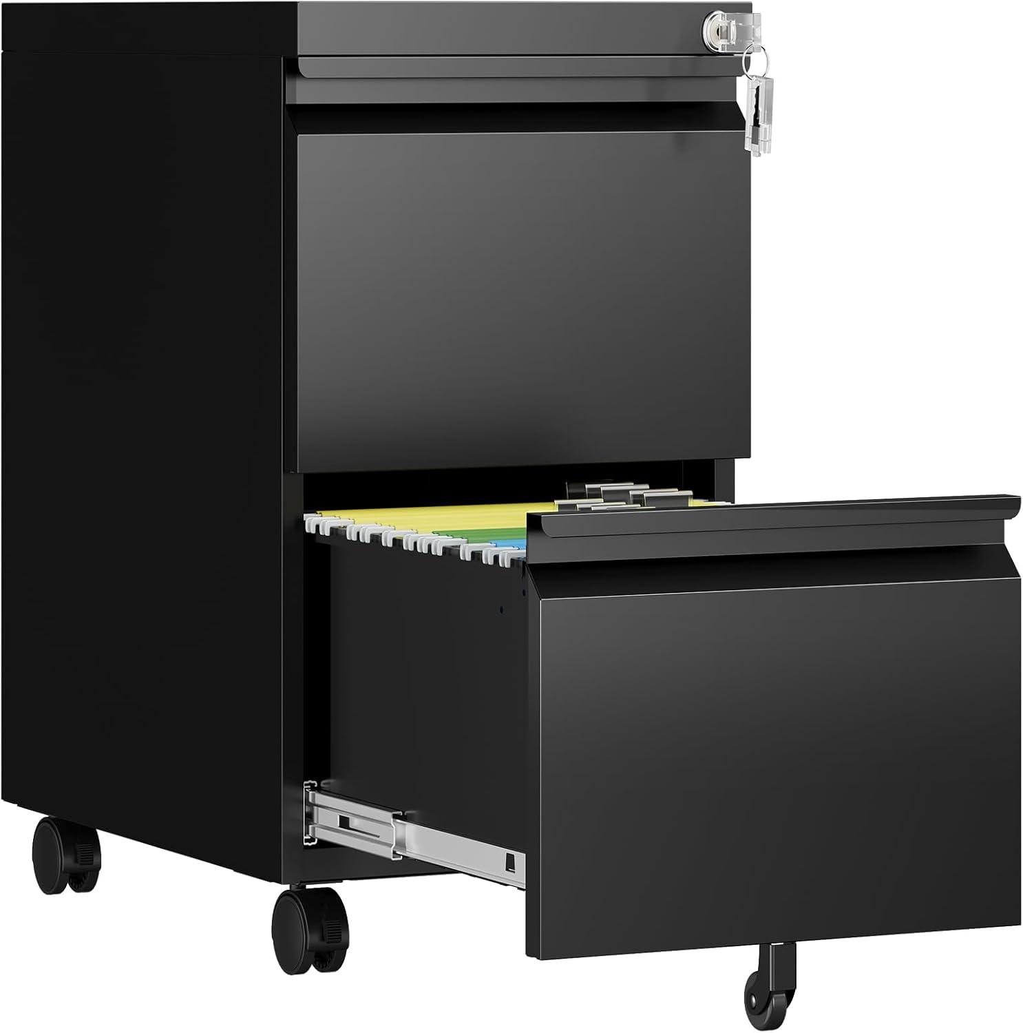 - 【Rolling File Cabinet with Lock】:AFAIF 2 drawer file cabinet has one lock equipped with two keys, which can help you keep your valuables and documents safe. It can not only provide spacious storage space to keep files, papers, office machines, and supplies organized, but also an attractive decor for your home and office.