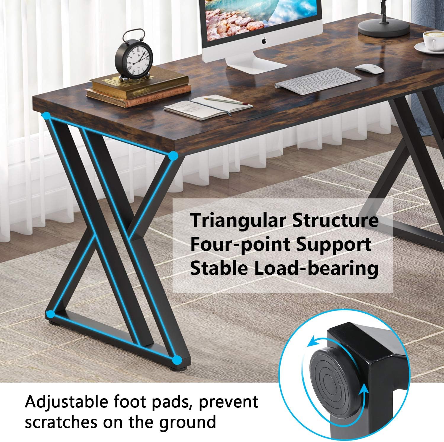 - Durable and Sturdy Construction: Constructed with 1.97β thick particle board desktop with high-quality metal frame that provides a sturdy and stable workspace. This ensures that the desk can support the weight of a computer and other office equipment without wobbling