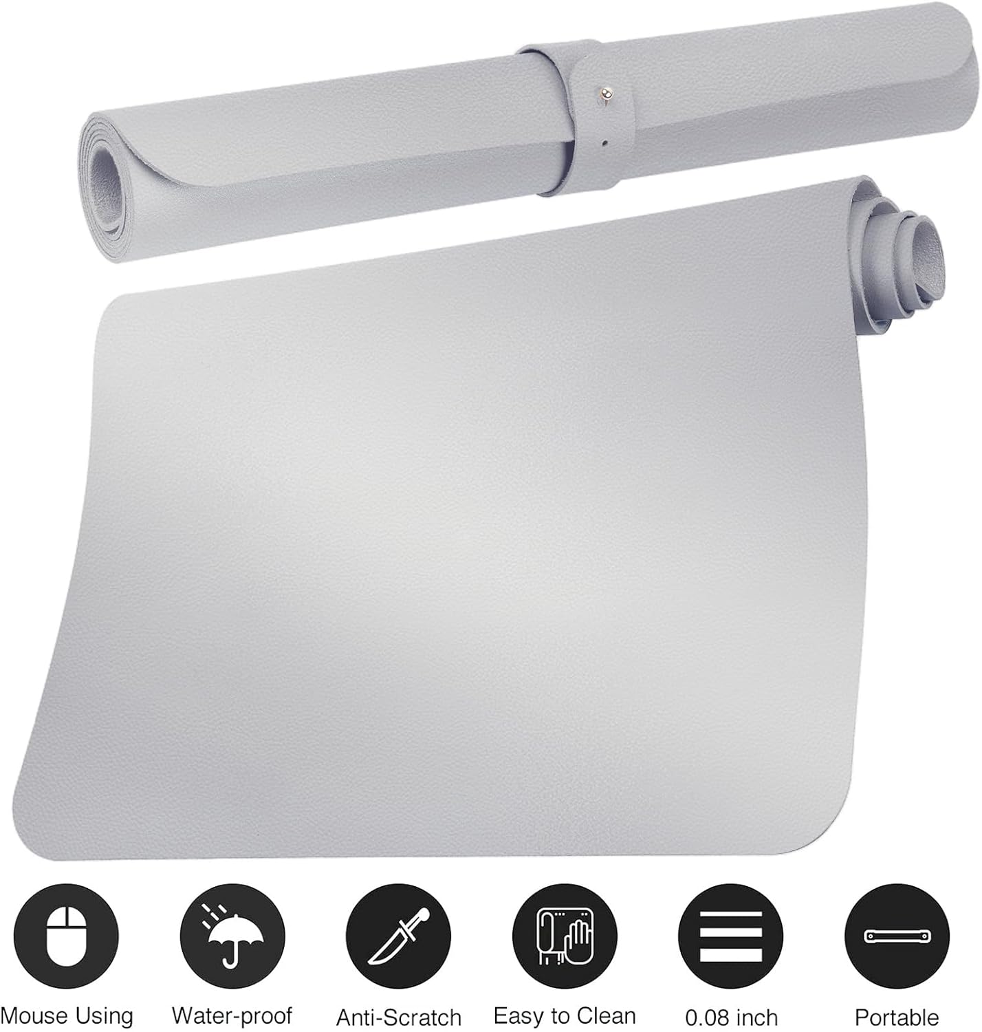 Boutilon Leather Desk Pad Protector,Non-Slip Mouse Pad,Laptop Desk Pad,Office Mouse Mat,Waterproof Leather Desk Blotter,Desk Writing Pad for Office and Home (S-Silver,24"x 14")