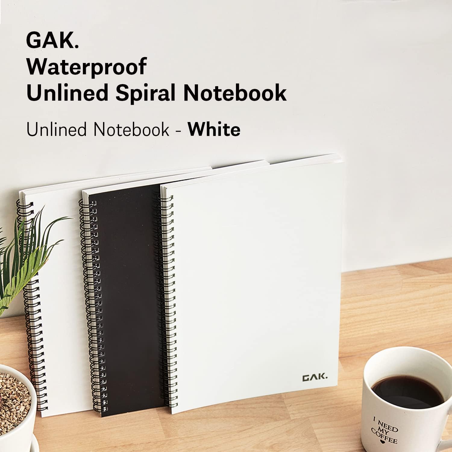 GAK. Stone Paper Notebook | No Lines Spiral Notebook Waterproof Sheet Aesthetic Journal for Note Taking | Notebooks for Work & Aesthetic School Supplies | Large Size, White (7.2”x10.1”, 50 sheets)