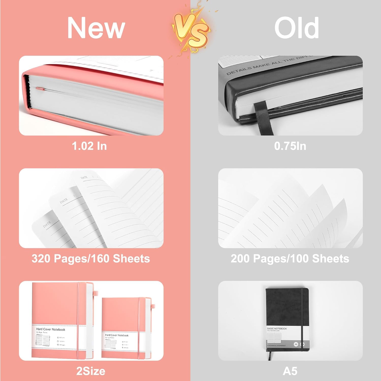 - 320 Pages Paper - Pink journal with 320 pages provides you with enough writing space. A5 journal with 100gsm paper, thicker than normal paper, will not cause bleeding, ghosting or smudging and is suitable for most types of pens.