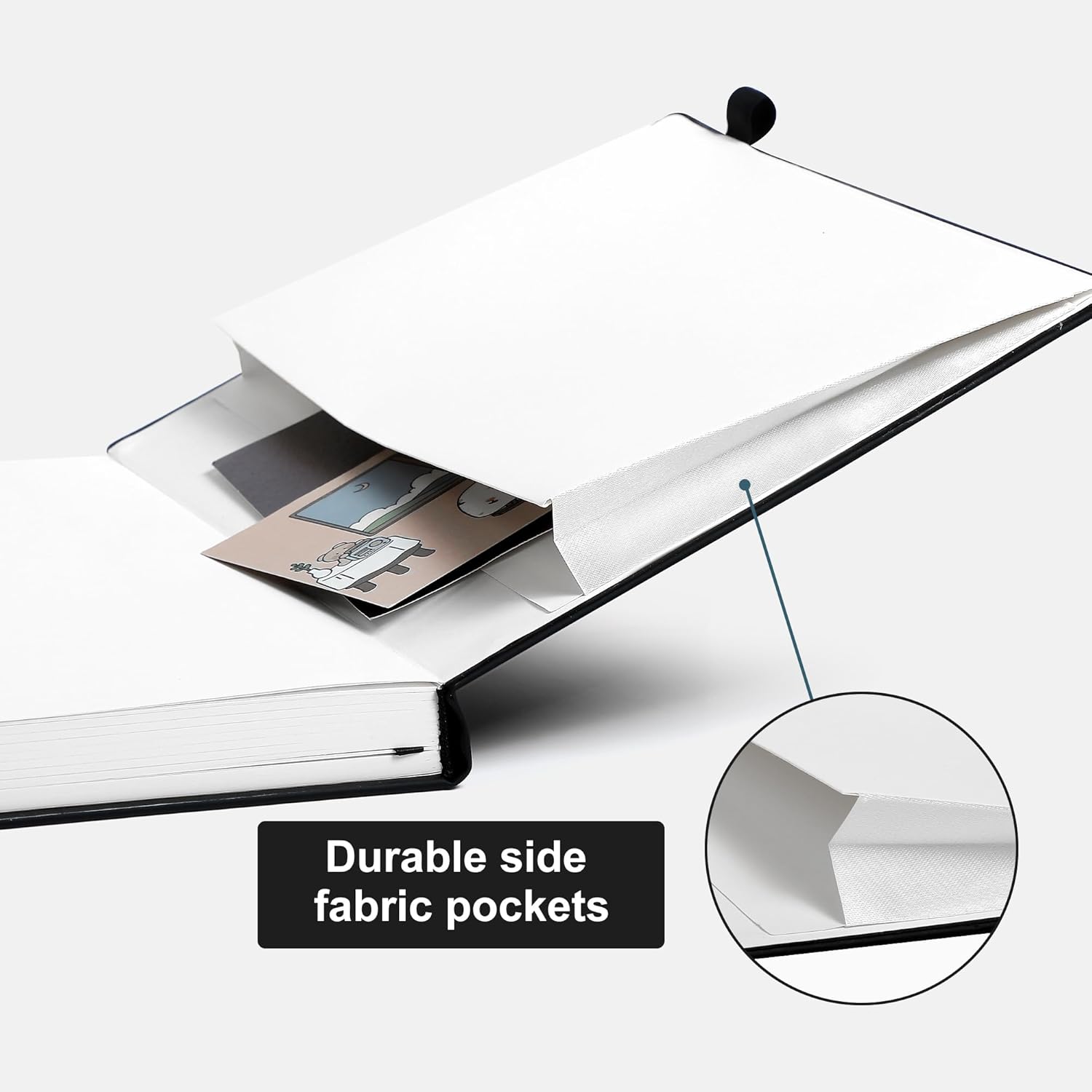 - Notebook with Pockets - Journal for women comes with a paper pocket and gold trimmed fabric to make the pockets more durable. Hardcover Notebook has colorful ribbons and elastic bands and a pen insert on the right side of the journal.