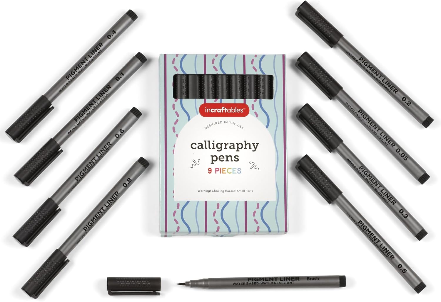 - COMPLETE CALLIGRAPHY PEN SET: Includes 8 precise tips (0.05mm to 0.8mm) plus 1 versatile brush pen, perfect calligraphy pens for writing clean lines and bold strokes.