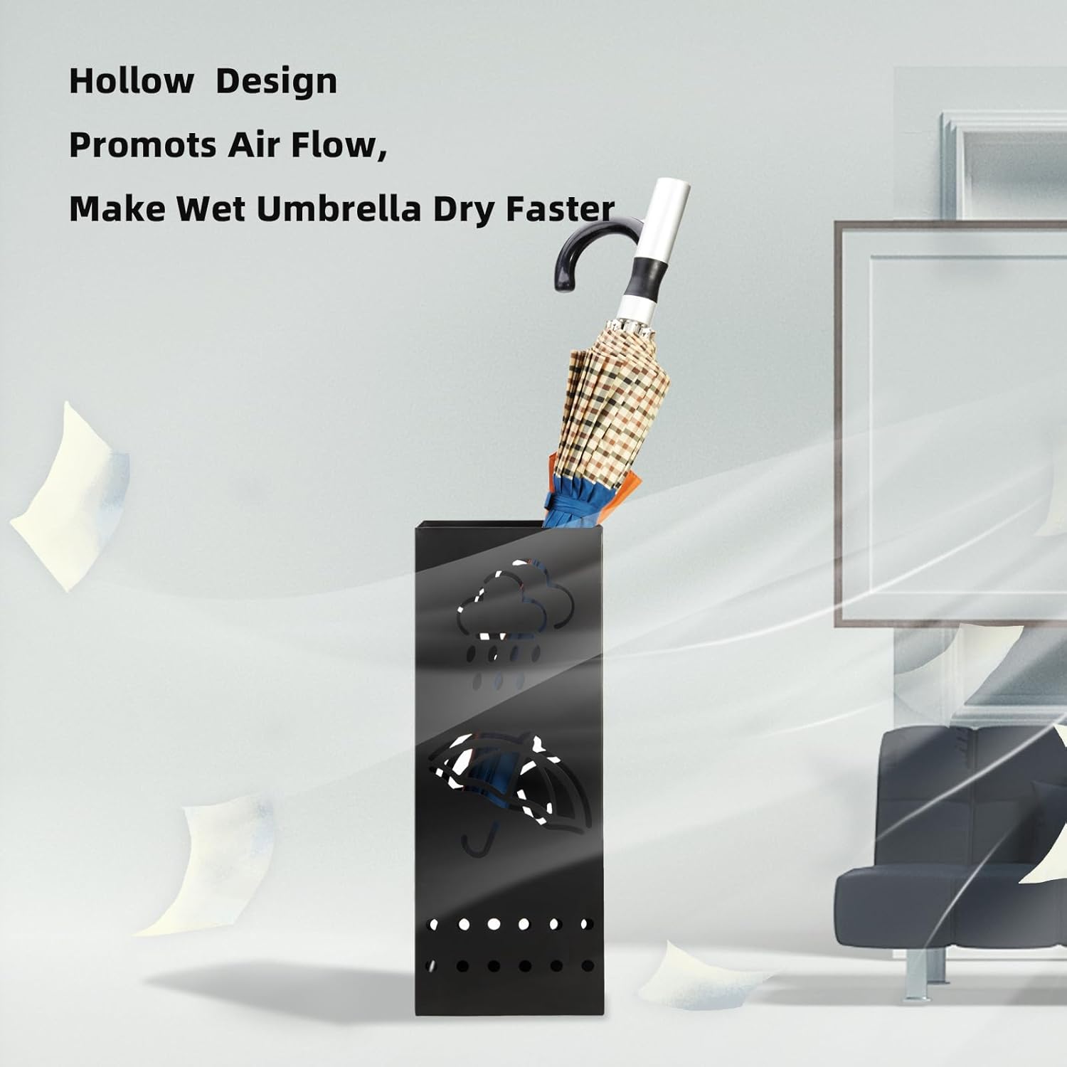 - Stylish Design: Our umbrella holder bin adopts elegant hollow-out rain and umbrella design, can not only maintain good ventilation, let your umbrella dry faster, but also add a touch of elegant and modern to your home decor.