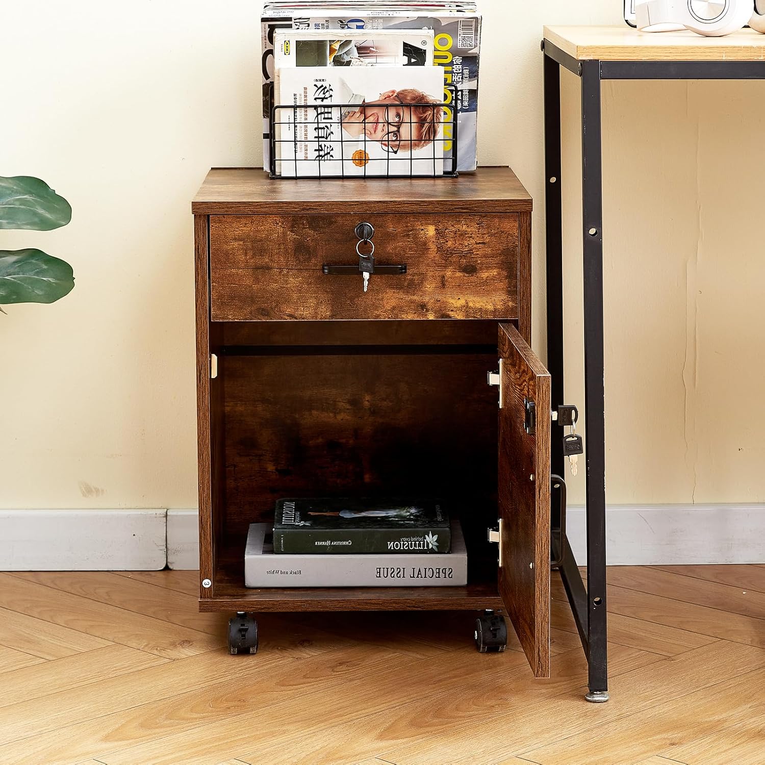 - Special Feature : 360° smooth lockable wheels, Anti-tilt design, High-quality load-bearing MDF board, lockable drawer & door, under desk storage 360° smooth lockable wheels, Anti-tilt design, High-quality load-bearing MDF board, lockable drawer & door, under desk storage
