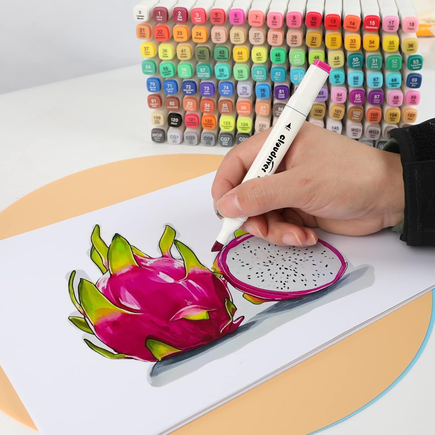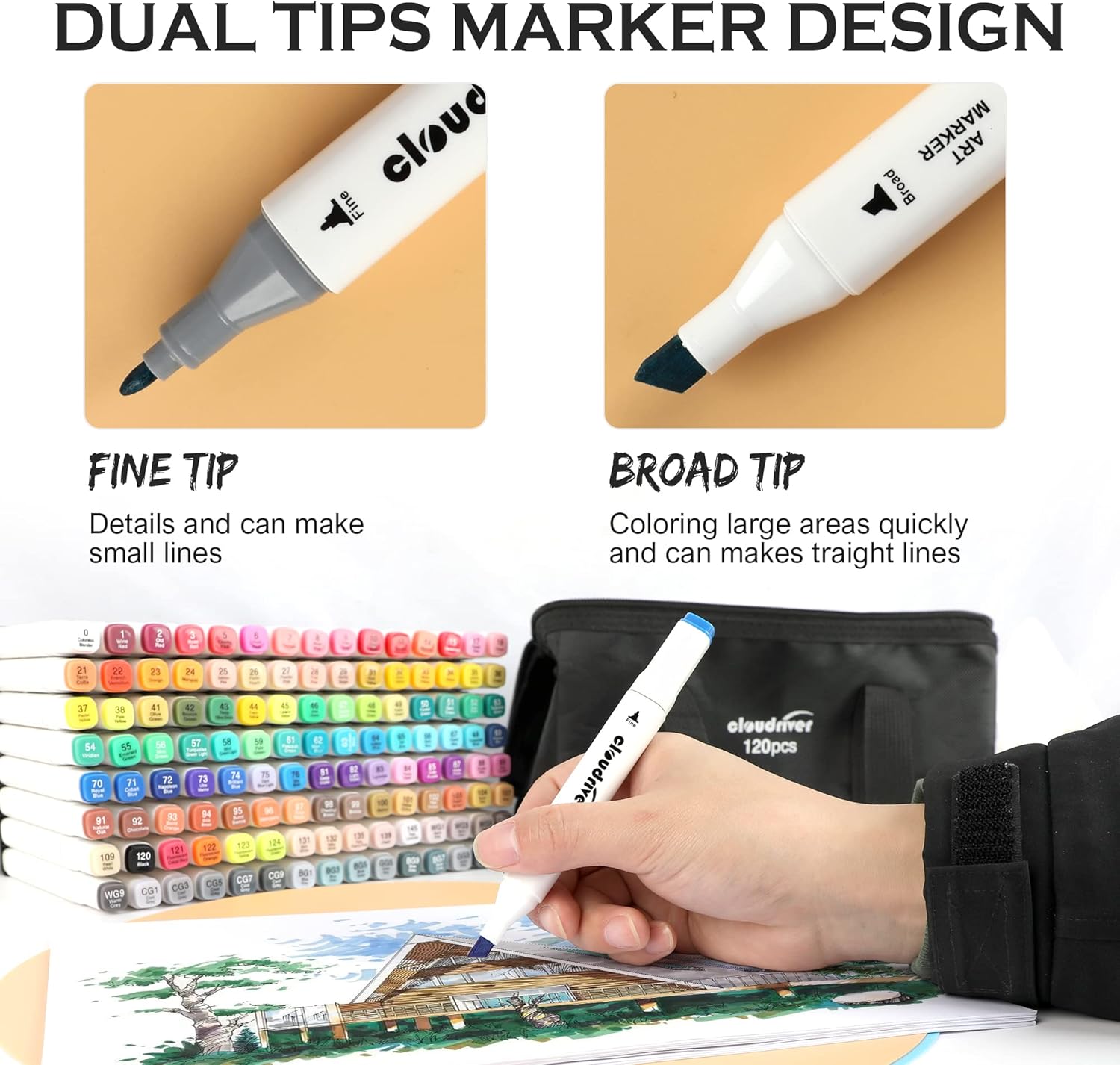 cloudriver 120 Colors Alcohol Markers, Dual Tip Permanent Art Marker For Adults, Alcohol Based Markers Set For Coloring Drawing Sketching
