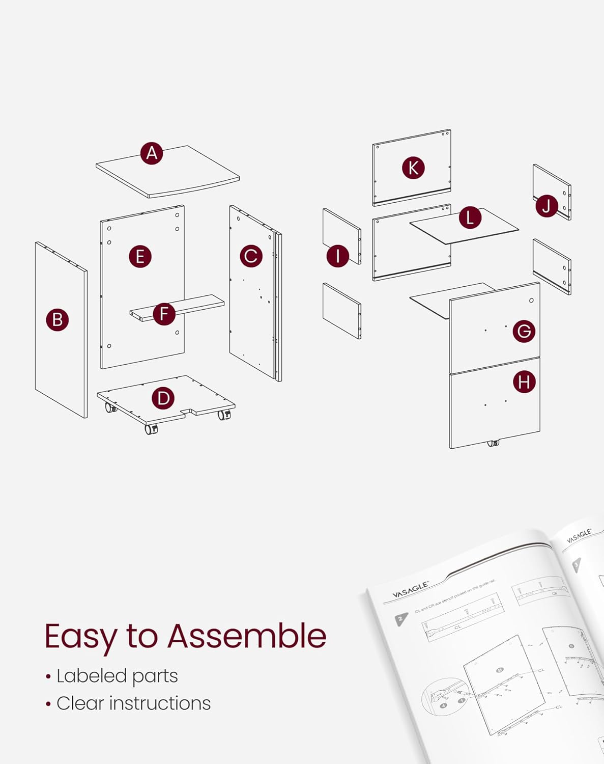 - [Easy to Assemble] Clearly-labeled parts and illustrated instructions make it a breeze to set up this 2-drawer file cabinet with lock. You can start organizing your home office or study room as soon as possible!