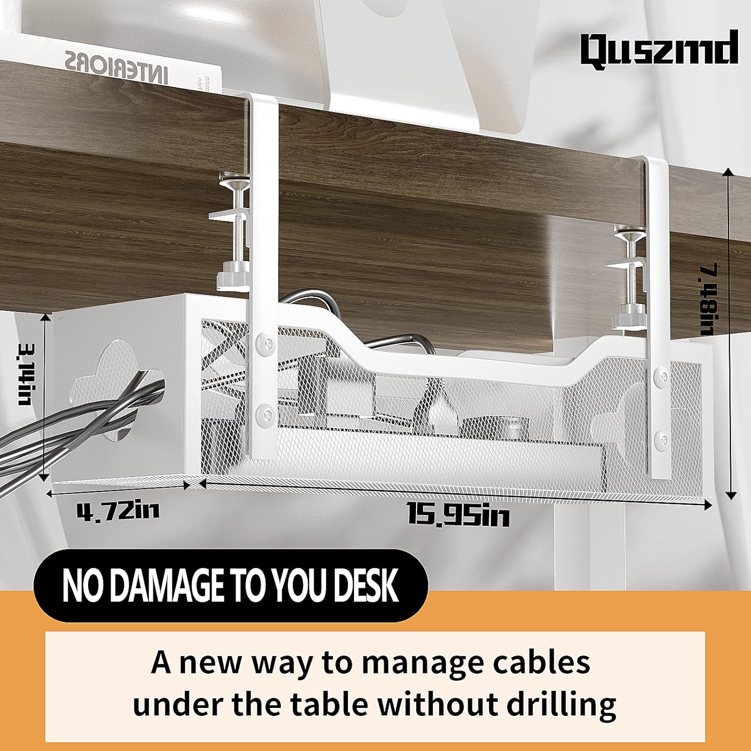 - NO DRILLING REQUIRED - Quszmd under desk cable management rack provides "drill-free installation" option, which adopts clip-on installation method, so you can use this product on all tabletops including standing desks, glass tables, wood, metal tables, etc. Will not leave any marks or damage to your table. But please note that when there are iron wires or other partitions under your table, you need to carefully check whether the size of this product can be installed normally.