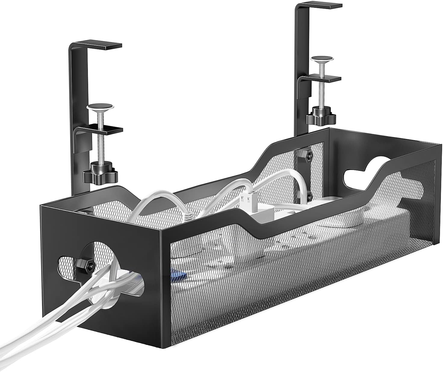 - ELEGANT UNDER DESK CORD ORGANIZER 1 Pack - The design of the mesh cable management frame is more beautiful and generous than that of pure iron wire products, and there is no problem putting small items in it. The design of cable management holes on both sides can help you manage cables more easily.