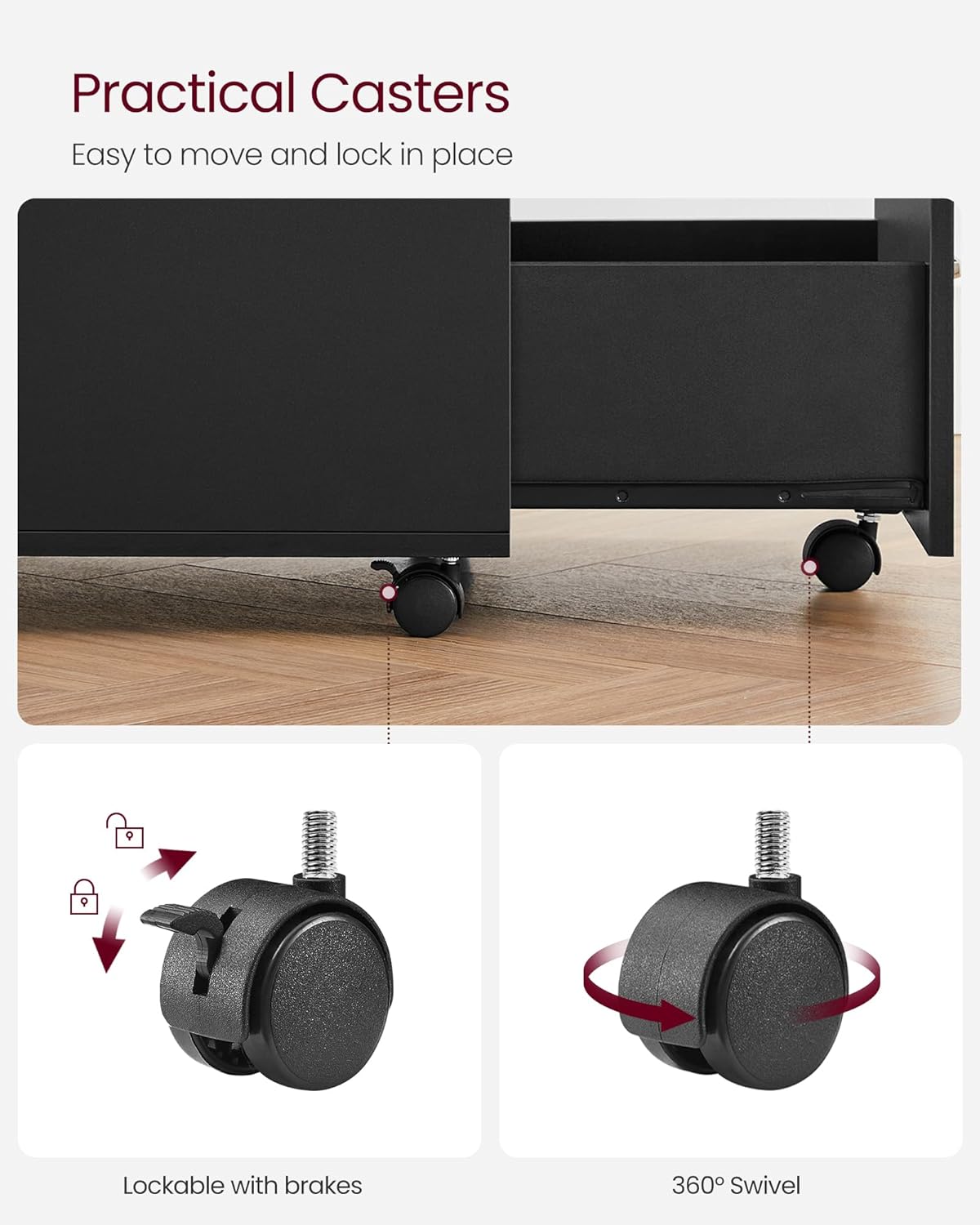 - [Lockable, 360Β° Swivel Wheels] Five 360Β° swivel wheels allow you to move this filing cabinet around with ease. The 2 front wheels are lockable to keep the cabinet in place when stationary and the fifth wheel on the bottom drawer adds to overall stability