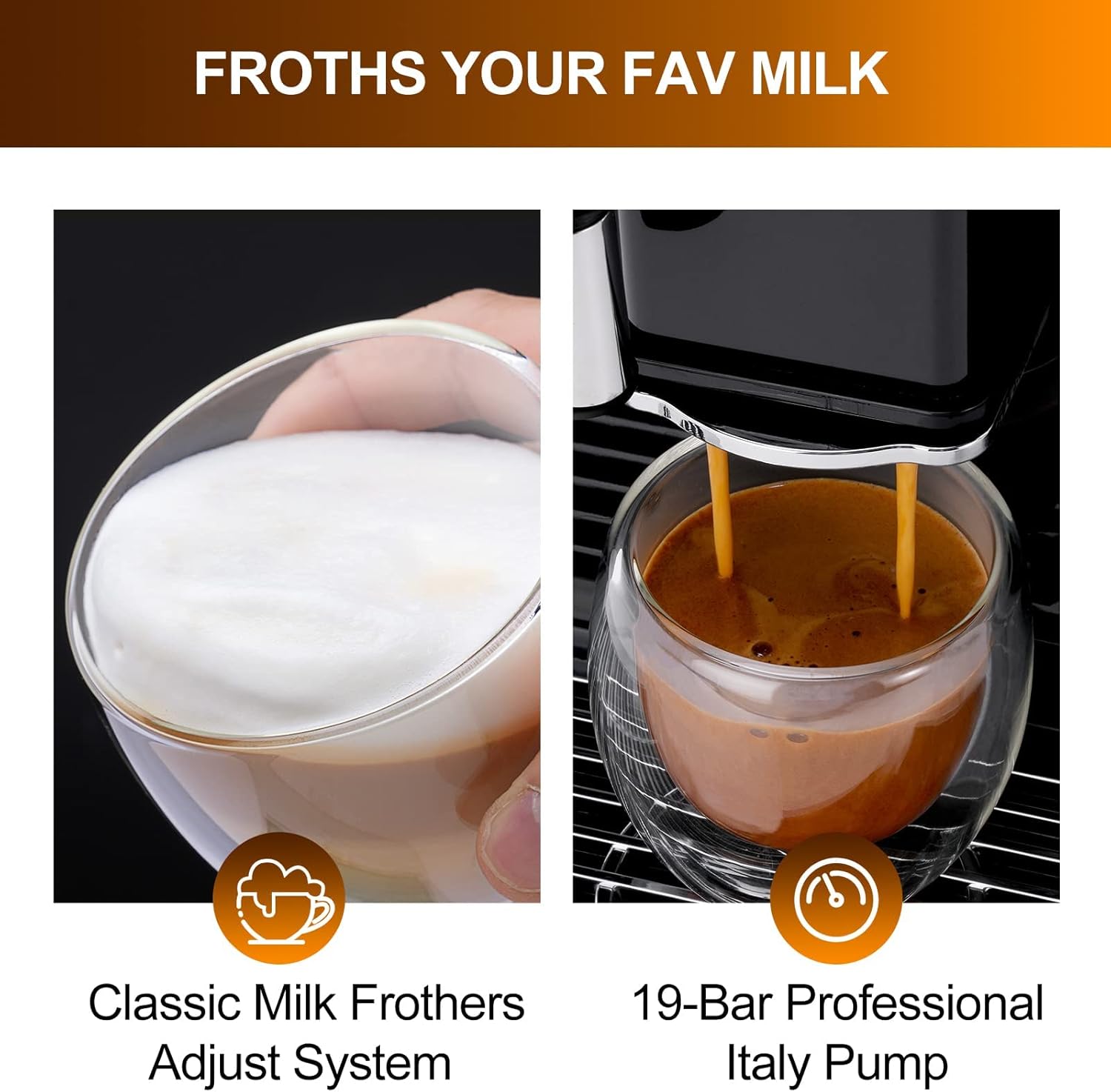 - β Automatic Microfoam Milk Texturing:The high-tech software allows you to customize the amount of coffee, temperature, and hot milk foam settings laid out in a user-friendly interface and Touch screen perfect for all customers Auto steam wand allows you to adjust the milk temperature and texture to suit your taste; Delivering barista quality micro foam that enhances the flavor of the coffee and is essential for creating.