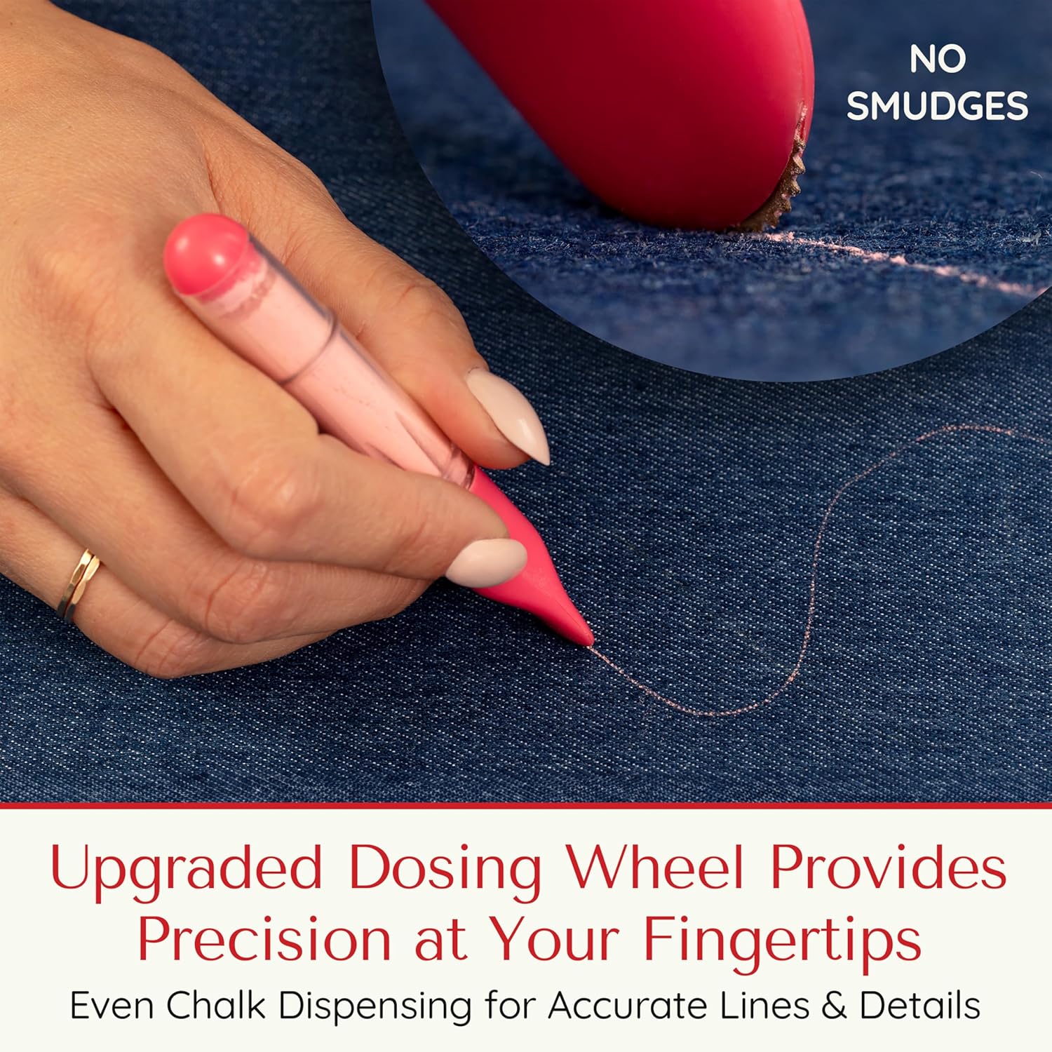 - Precision Made Simple: Features an improved Dosing Wheel that dispenses chalk evenly for sharp, accurate lines without smudging – a true sewing must haves for sewing enthusiasts. Lines are intentionally light to preserve fabric integrity and allow for safe removal, offering a cleaner, more precise alternative to messy tailors chalk