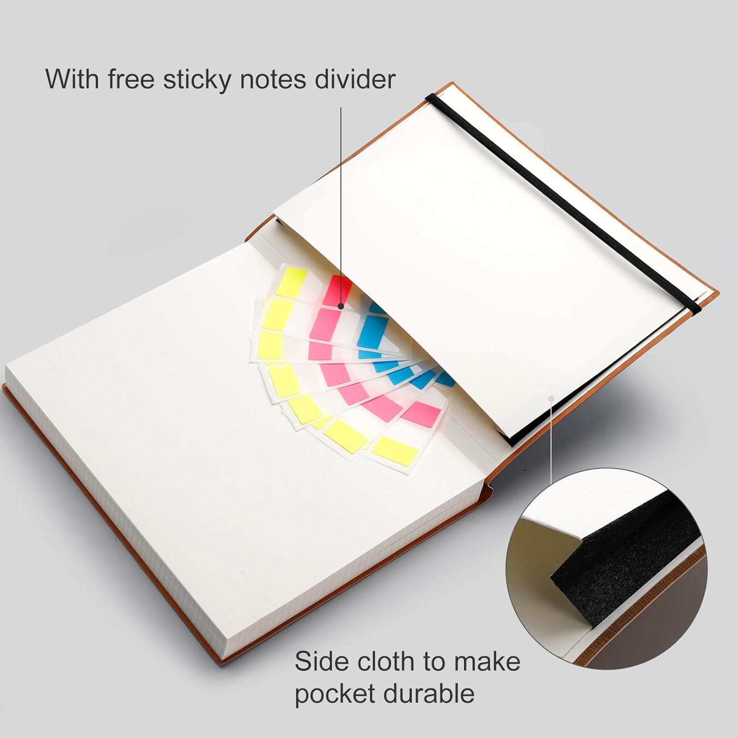 - Humanized Design: Divider sticky notes and 2 bookmarks help you find important content faster. Journal stencil included, an ideal tool for bullet journaling. Back inner pocket holds notes, business cards, small gadgets, etc. Closes with an elastic band for maximum privacy