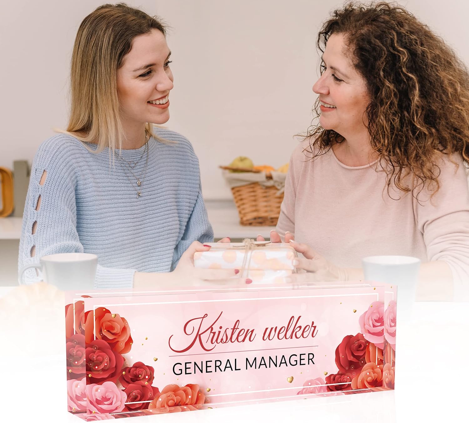 Desk Name Plate Personalized, Premium Rose Acrylic Desk Name Plate, Personalized Name Plate for Desk, Office Decor for Women or Men Coworkers, Boss, Employee, Teacher