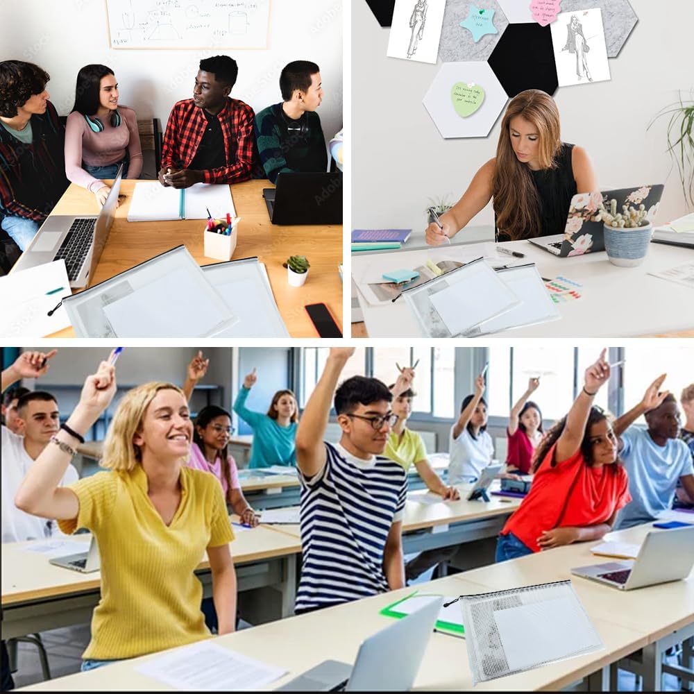 Vuzvuv 26pcs A4 Size 13"x 9.3" Mesh Zipper Pouch Zipper Bags,Document File Folders with Label Sticker,Waterproof Plastic Mesh Bag for File, Makeup, Board Game School Office Home Travel Storage