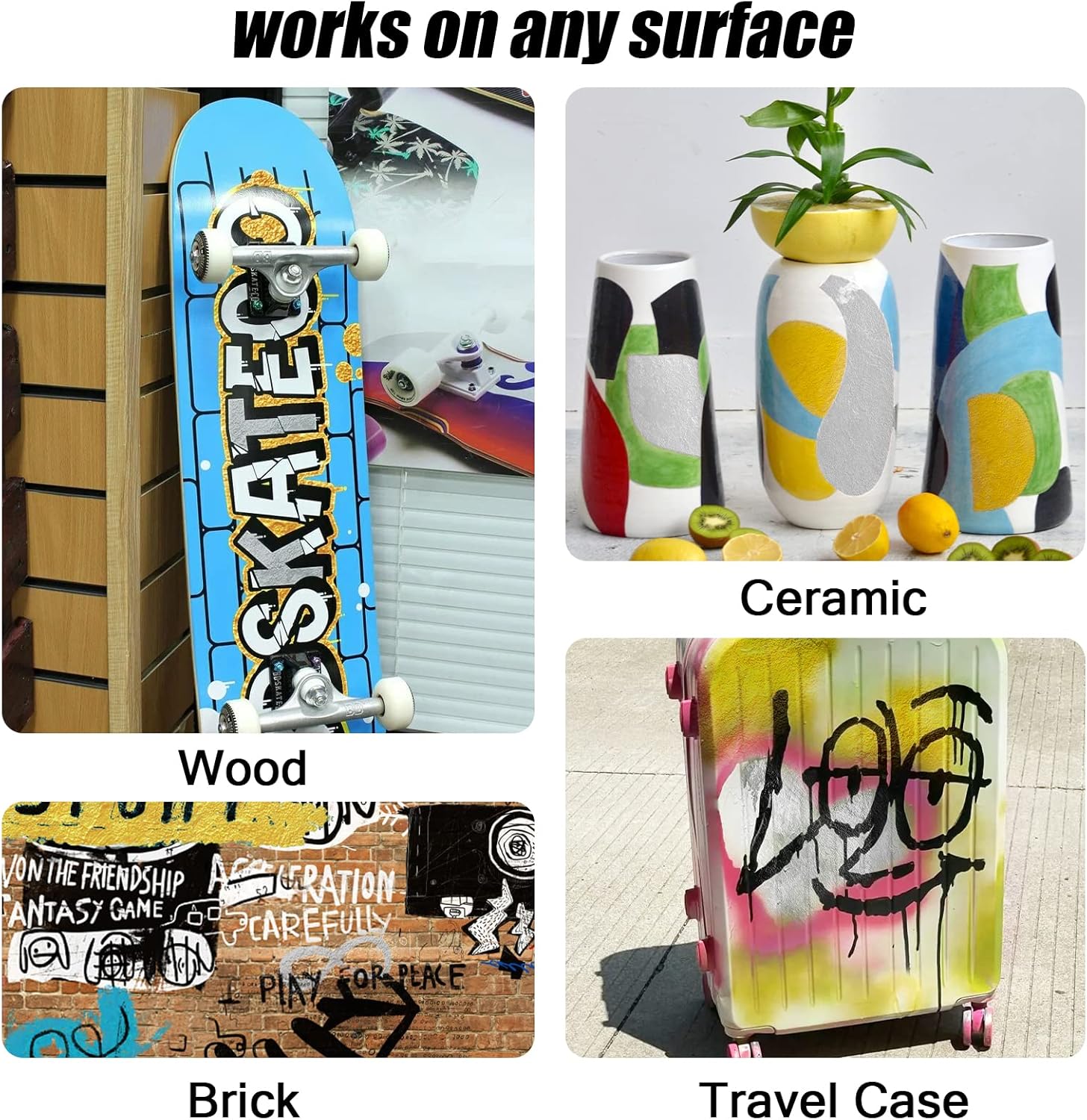 - 【Mark on MULTI-SURFACE】Get perfect artwork on almost any solid surface, leave message and permanent sign. Acrylic paint markers for rock painting, ceramic, wood, plastic, canvas, wood, fabric, canvas, textiles, metal, resin, polymer clay, vinyl, leather and more.