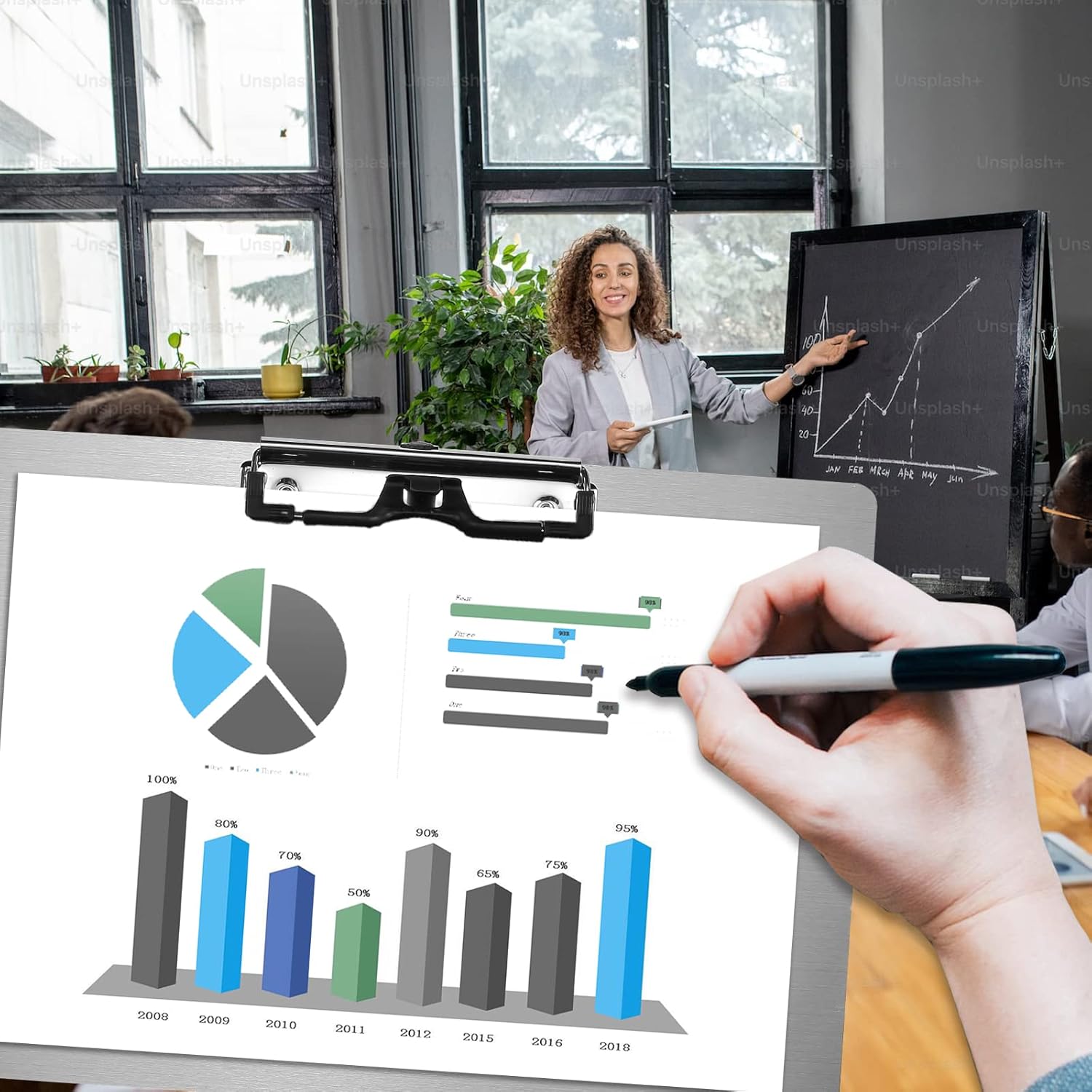 - - Large Capacity Spring Clip: Can hold A4 sized paper and acts as a mini whiteboard(excluding whiteboard pens).