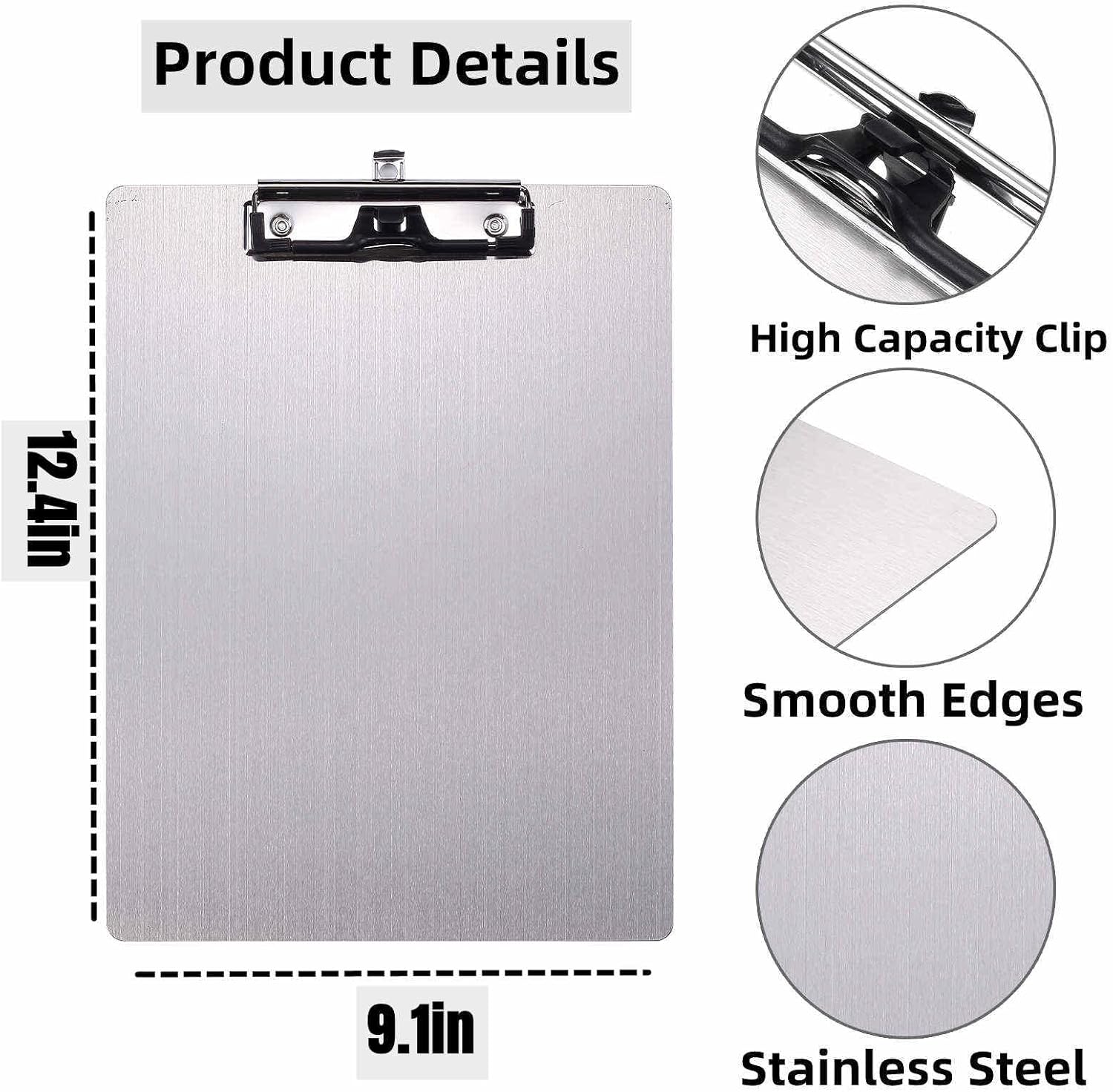 304 Stainless Steel Metal Dry Erase Clipboards with Pen Holder,Double-Sided Anti-Fingerprint White Board,Letter Size(Not to be adsorbed by Magnets)