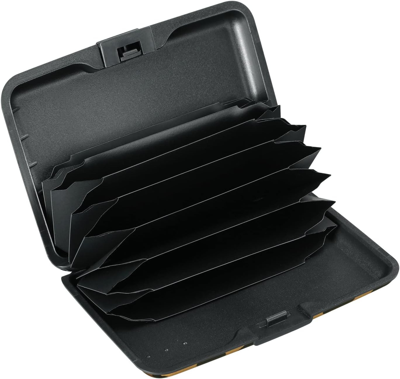 - Latches safely and securely when not in use. Rounded corner wouldn't damage on your clothes. With 7 accordion Slots, Capacity for up to more than 9 credit cards or more than 21 business cards.