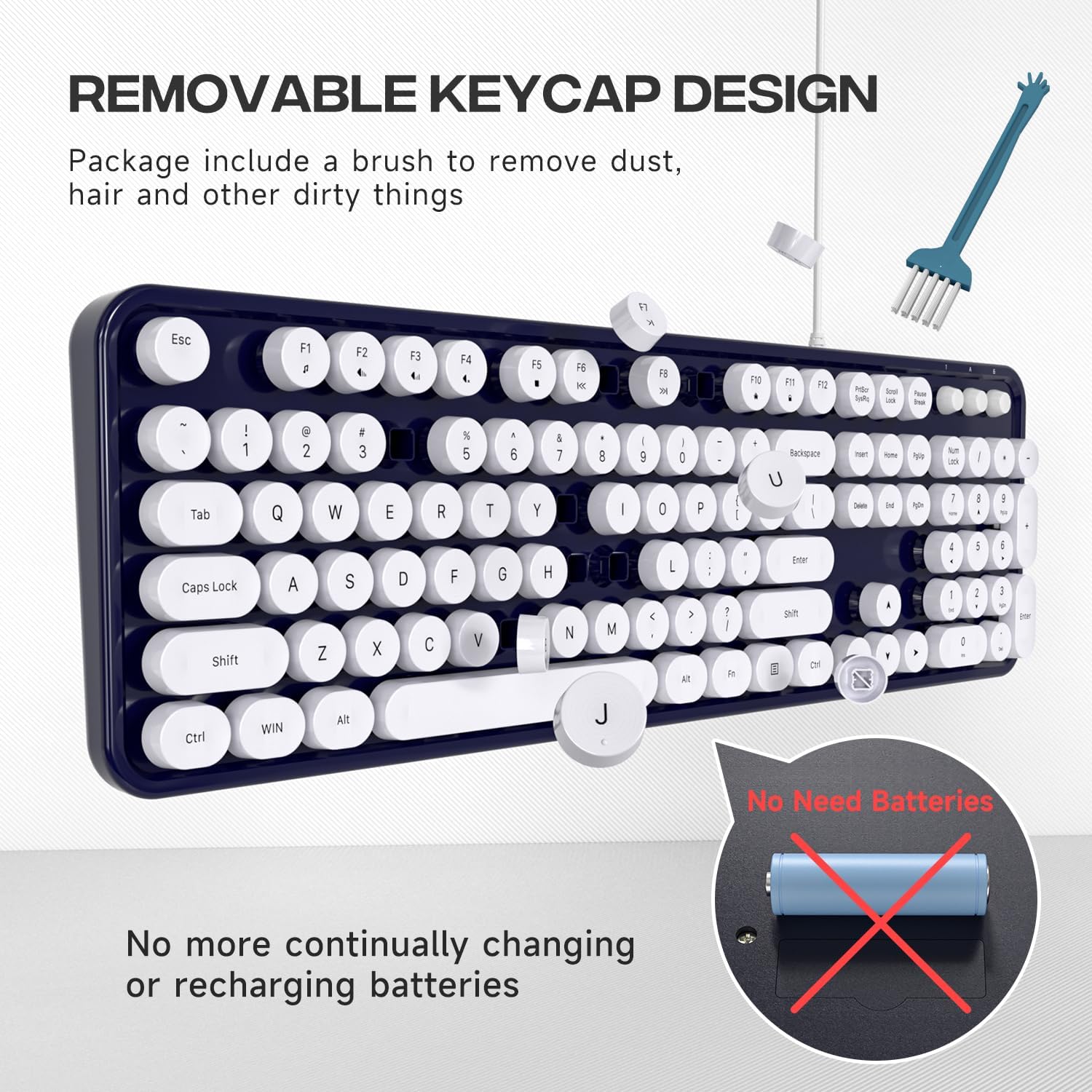 - 【Retro Wired Keyboard】Cute round keycaps, crisp and sweet sound, perfect knocking feel, let you find the feeling of a retro typewriter.
