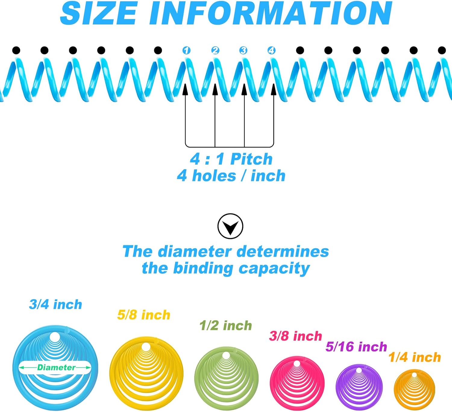 - Multiple Sizes for Your Choices: plastic spiral binding coils contains 6 diverse sizes, namely 1/4", 5/16", 3/8", 1/2", 5/8" and 3/4", to match and beautify most documents or pages, ideal accessories for offices