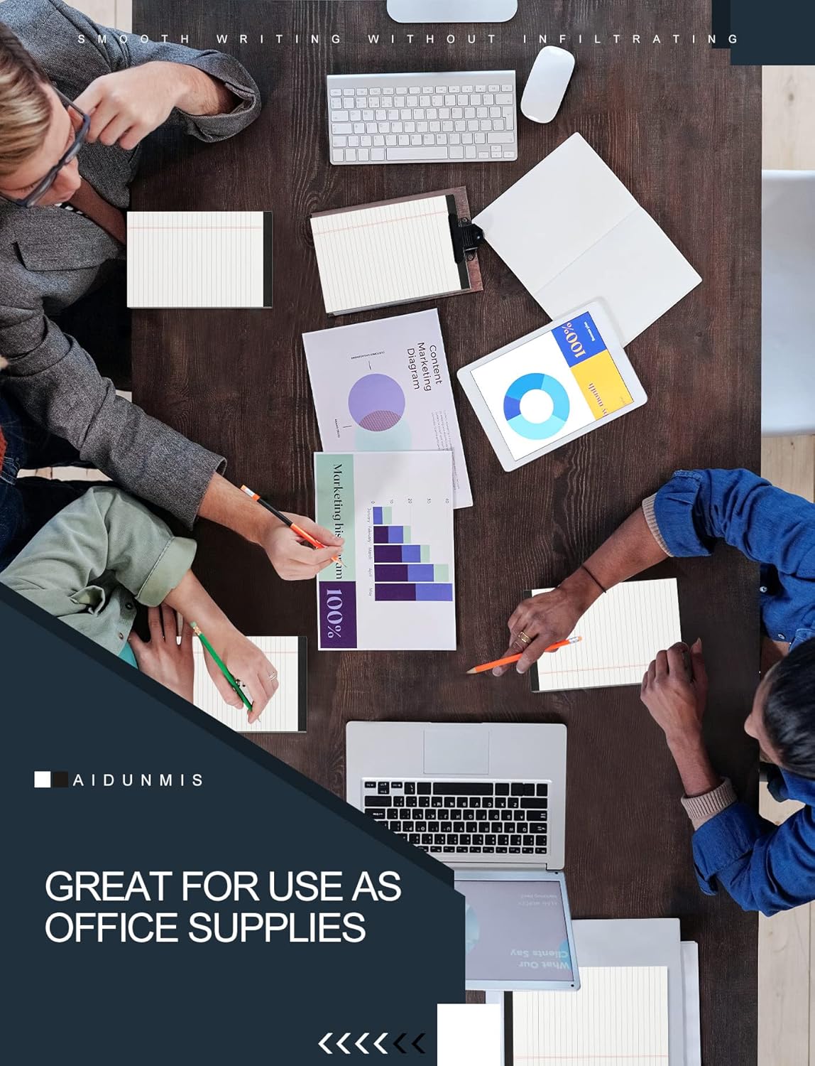 - [ENJOY WRITING AGAIN]: The note pads 5x8 lined paper has black lines and double red margin lines on left, narrow-rule format provides plenty of space for your notes. Legal pads 5x8 white smooth, premium-weight paper allows your ballpoints and ink gel pens to glide across the page. Legal pads college ruled writing stays on the surface and resists ink bleeding and show-through. The writing pads paper won't yellow over time and thicker than average legal pad for smooth writing with less ghosting.