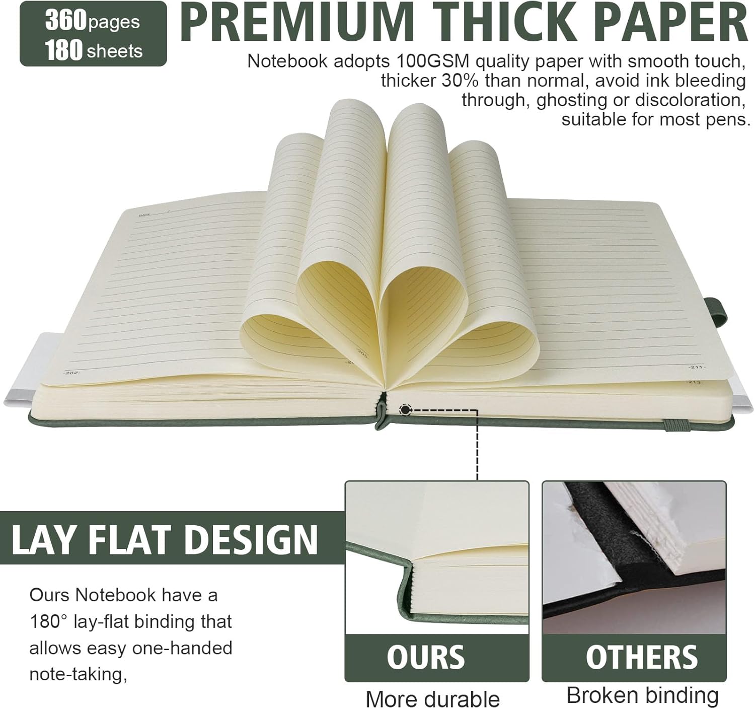 - 180 ° Flat Opening: easy to write, spine not easily broken, safe stitching and adhesive binding for a rust free writing experience, durable and durable