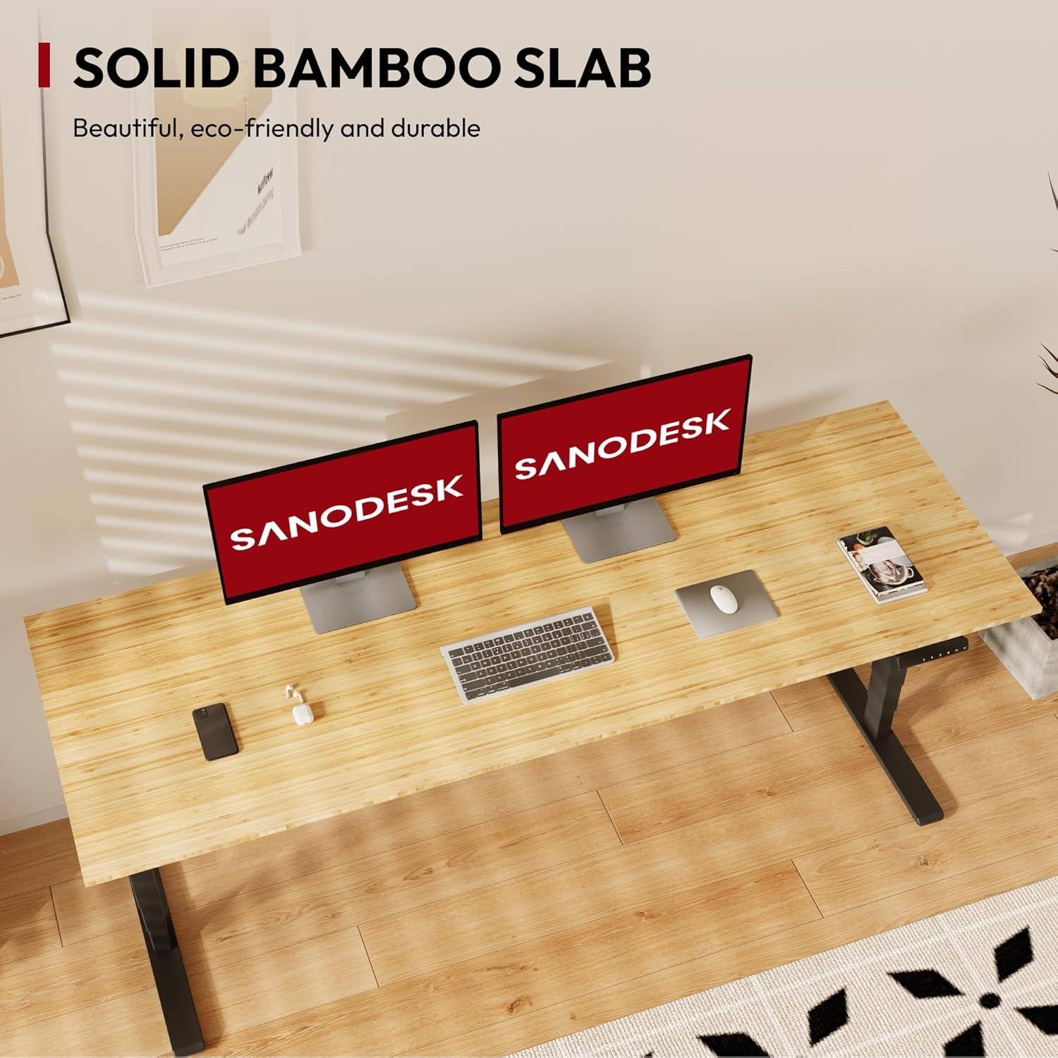 Standing Desk with Dual Motor, 3-Stage Lifting Column, Handset with 3 Preset and Sit-Stand Reminder - 78 inch Whole Piece Real Bamboo Desk/Black Frame, Height Adjustable Desk for Home and Office