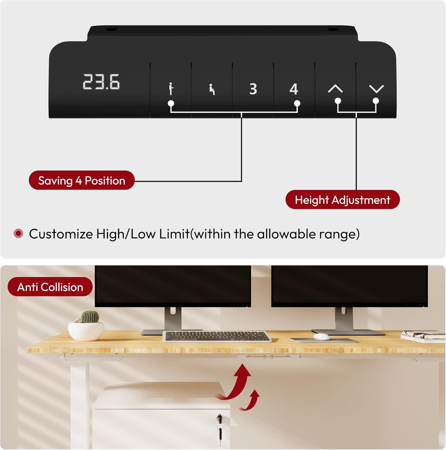 - Health-Conscious and Efficient Handset:The handset, equipped with 3 presets and a sit-stand reminder, facilitates easy transitions between sitting and standing positions.An LED screen displays current height, countdown time, and encourages standing breaks, contributing to improved work efficiency and comfort.