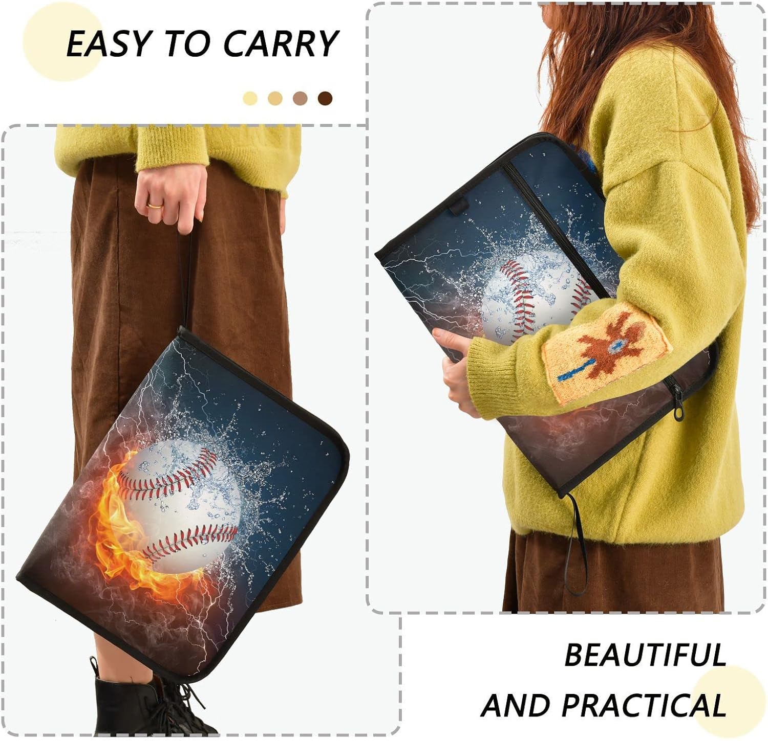 Gredecor Baseball Ball in Fire and Water Expanding File Folder 13 Pockets Sports Theme Expandable Filing Folders Accordion Document Files Organizer for A4 Letter Size Paper