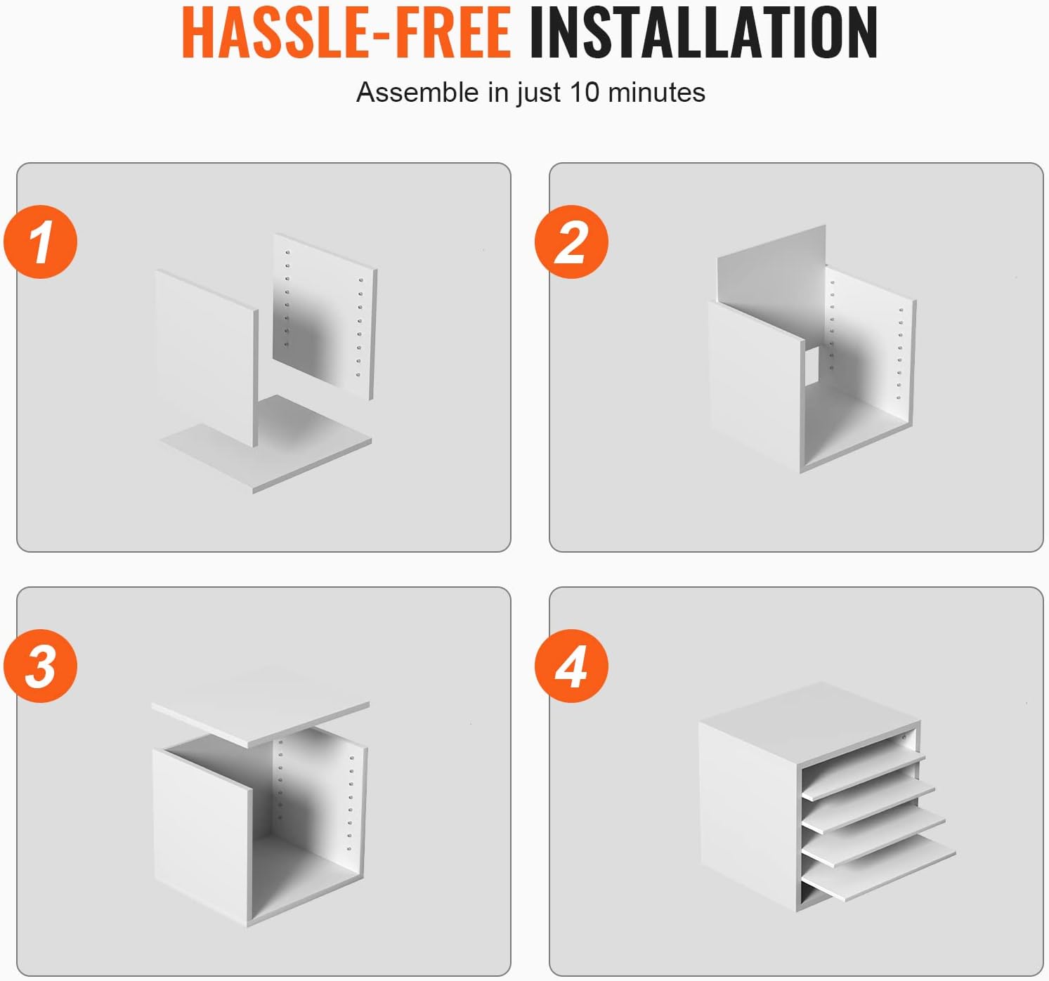 - Assemble in No Time: Our literature organizer sorter is incredibly easy to install, thanks to its simple panel design. With the included assembly instructions, you'll be guided through every step of the process, making it a breeze to complete the installation in just 10 minutes!
