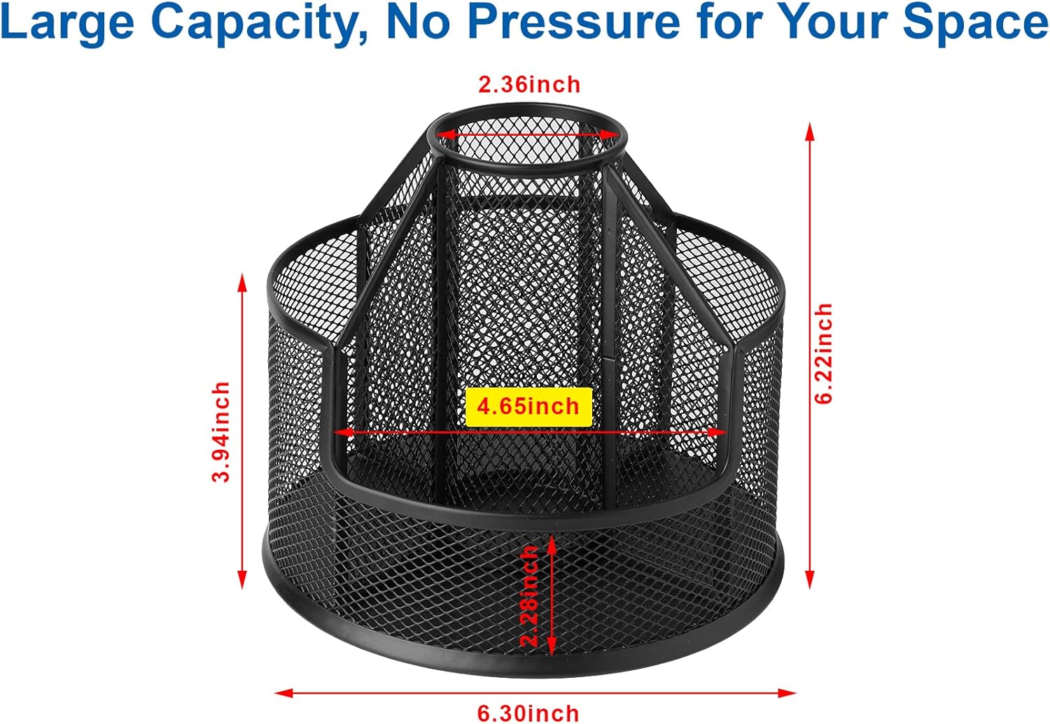 - âăUltra-Large CapacityăThe mesh pen organizer has 5 separate compartments to maximize space, which store a wide variety of items, perfect for paintbrushes, colored pencil, markers, office supplies and desk accessories to meet your various needs. No need to occupy a lot of space, keep everything neat and orderly.