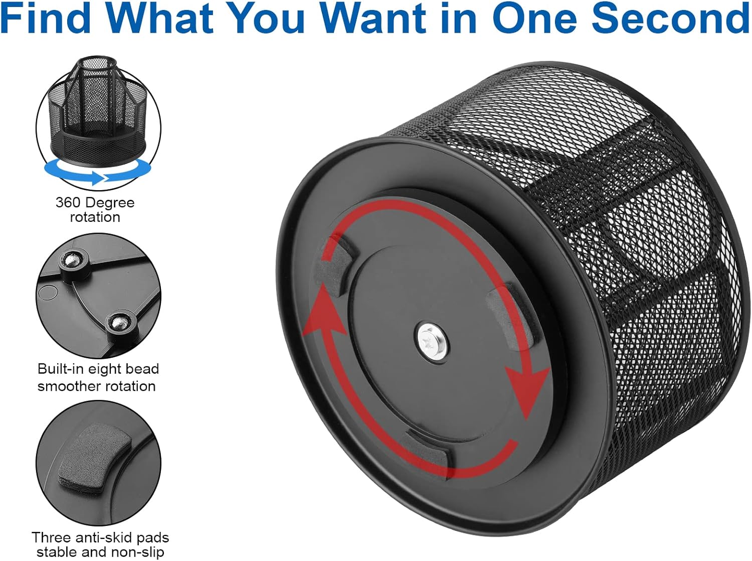 - âăStable 360 Degree Rotating Designă This rotating desk organizer has a 360-degree rotation of chassis with reinforced anti-skid pad, this makes it very stable and no damage to your desktop; and can rotate left and right 360 degrees very smoothly without worrying about getting stuck. You can rotate to your front at any time to access items at the easiest angle, making them more efficient and improving your work efficiency.