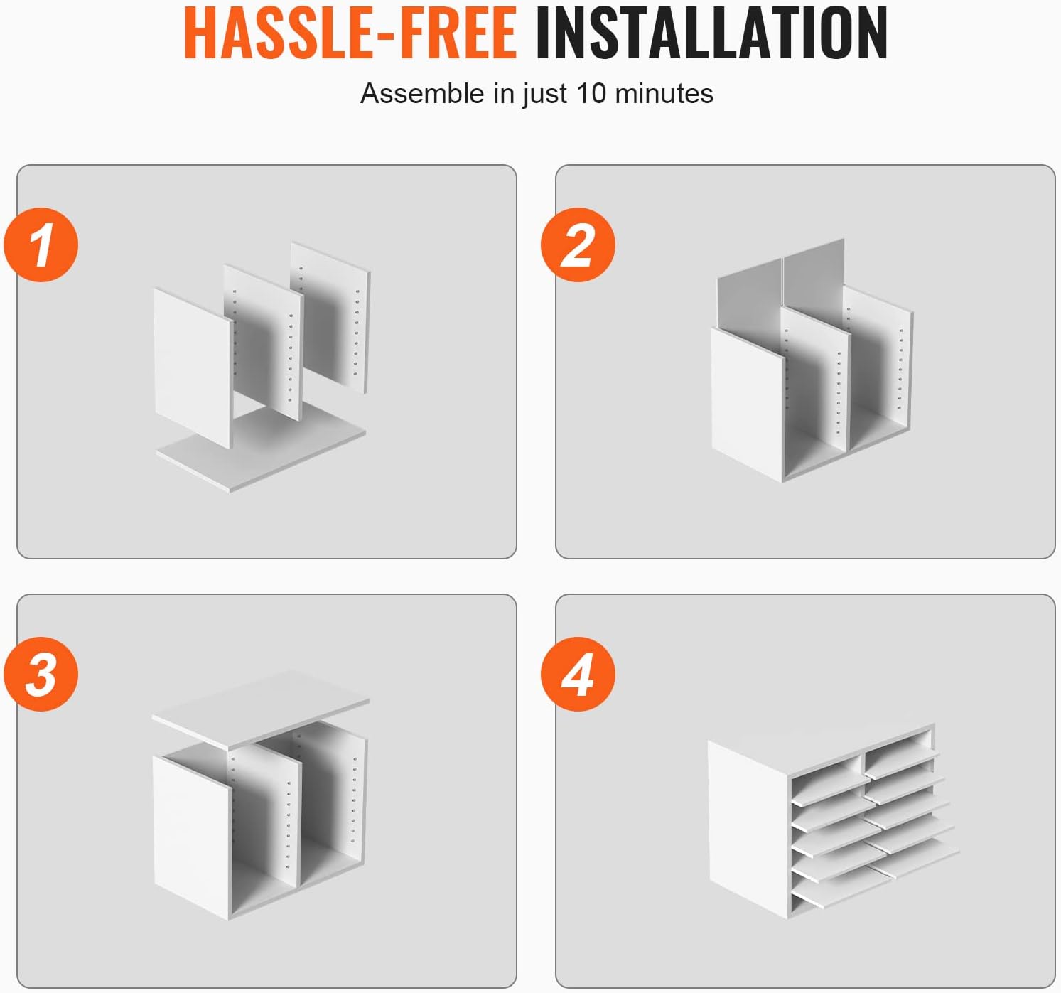 - Assemble in No Time: Our literature organizer sorter is incredibly easy to install, thanks to its simple panel design. With the included assembly instructions, you'll be guided through every step of the process, making it a breeze to complete the installation in just 10 minutes!
