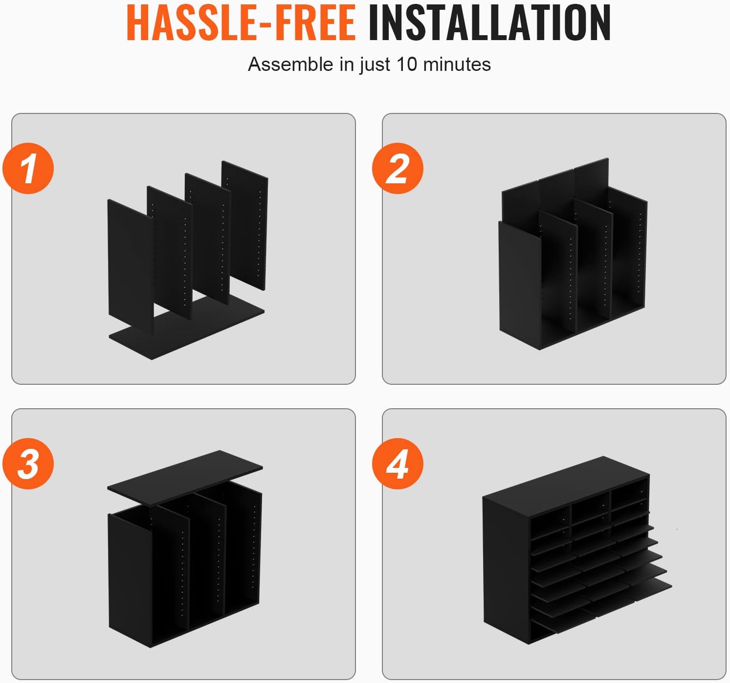 - Assemble in No Time: Our literature organizer sorter is incredibly easy to install, thanks to its simple panel design. With the included assembly instructions, you'll be guided through every step of the process, making it a breeze to complete the installation in just 10 minutes!