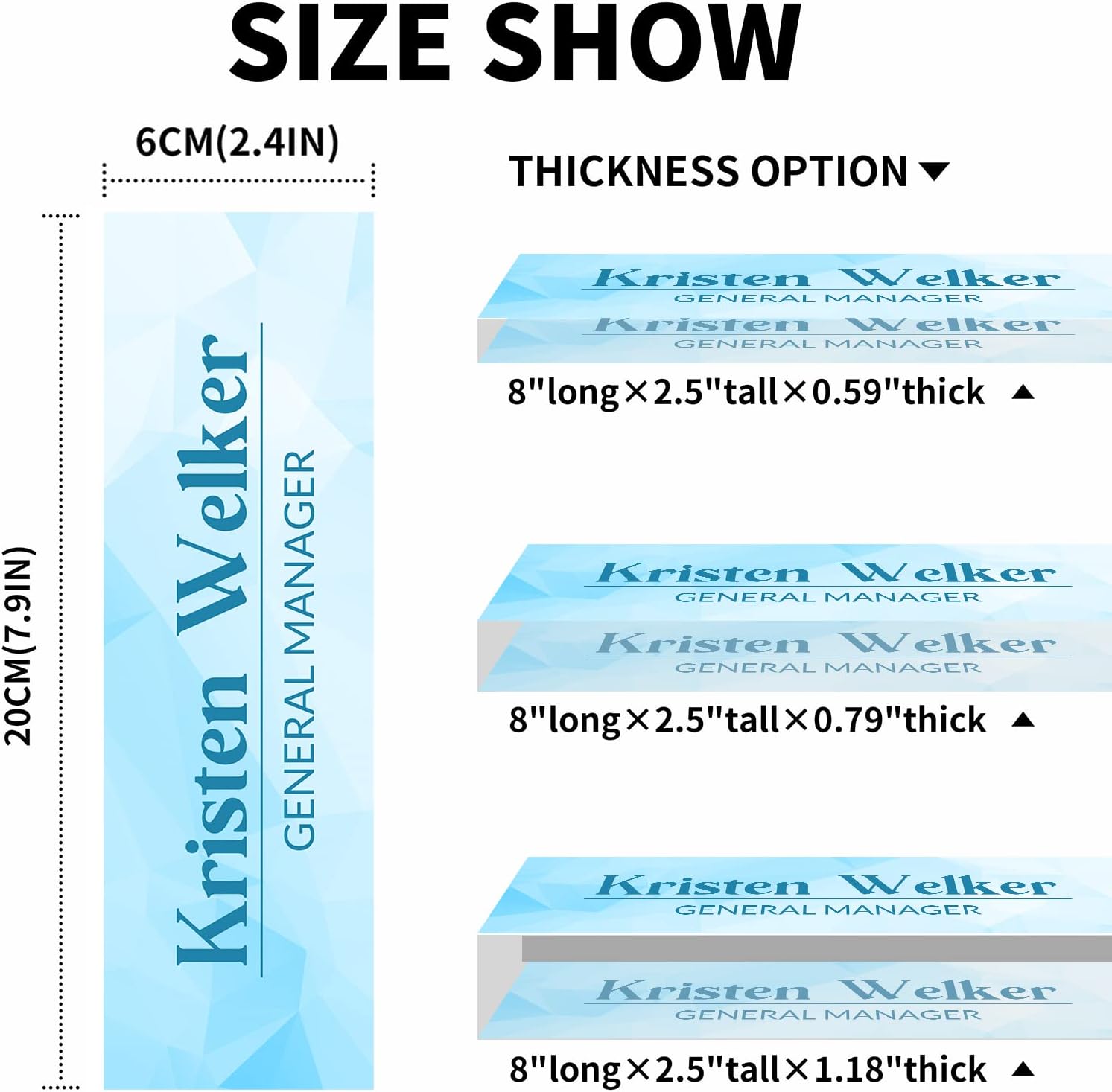 - 🎁Premium Quality: The personalized name sign plates are made of high quality crystal clear acrylic blocks. This office nameplate will stand out on any desk! We use high-tech uv printers to print on quality clear acrylics glass so you can visualise your memories.