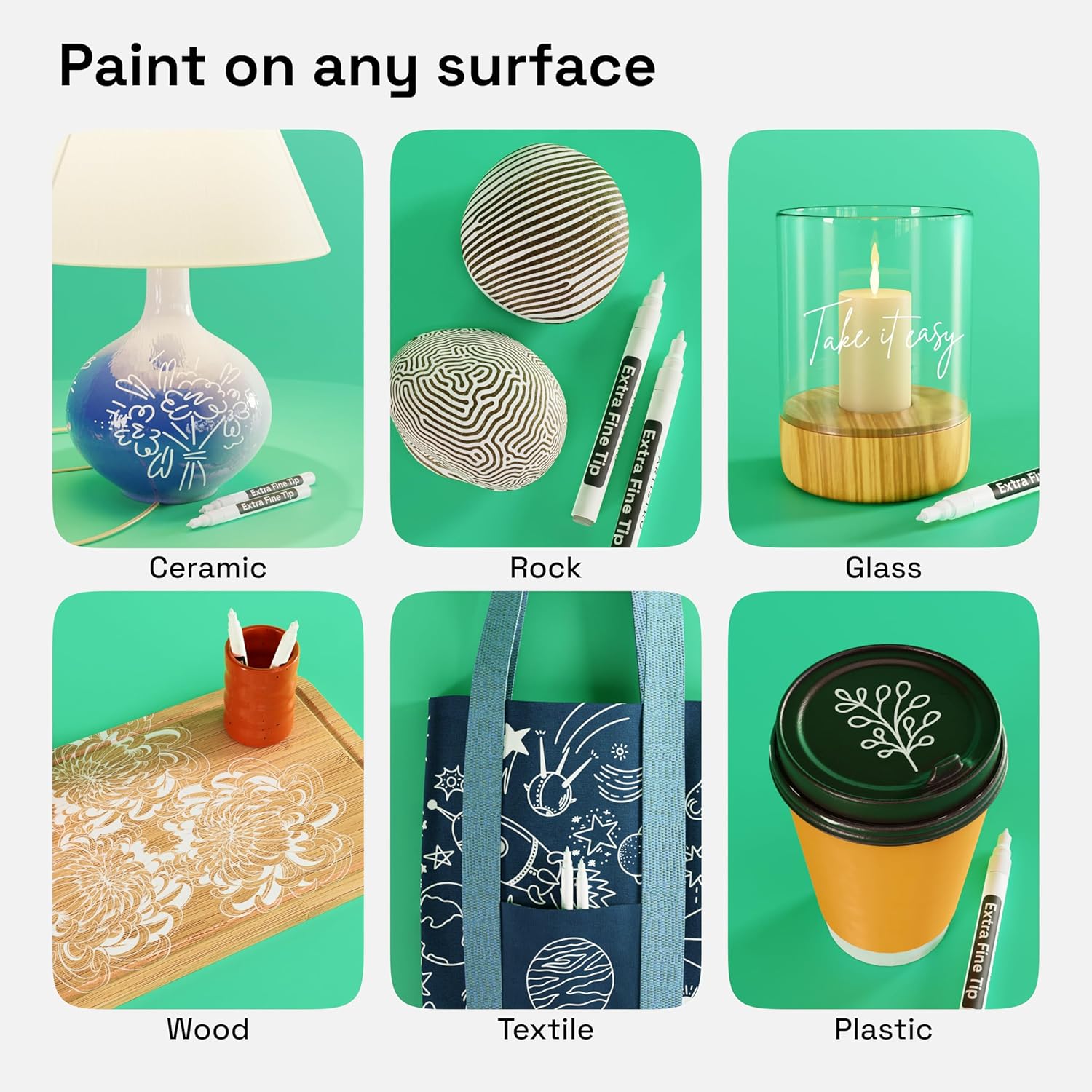 ARTISTRO 2 White Acrylic Paint Markers - 0.7mm Extra Fine-Tip Paint Pens - Perfect for Crafting, Art Projects, & More