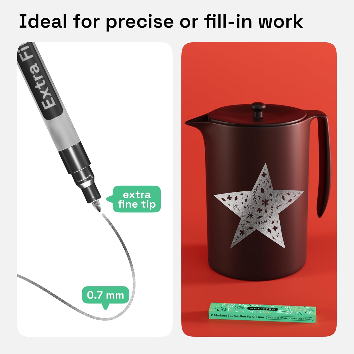 ARTISTRO 2 Silver Acrylic Paint Markers - 0.7mm Extra Fine-Tip Metallic Paint Pens - Perfect for Crafting, Art Projects, & More