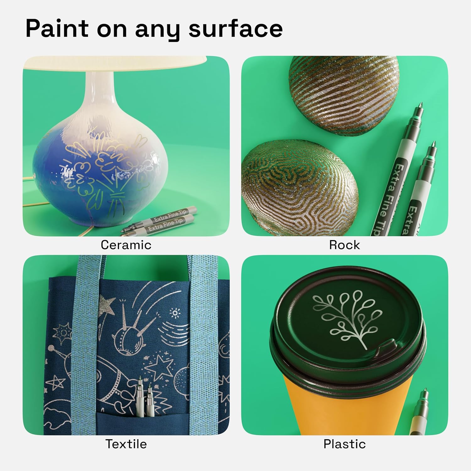 - MULTI-USE: Use these acrylic paint pens for rock painting, sneaker painting, or glass painting. You can also use these paint markers for canvas, metal, pottery, plastic, terracotta, outlining, lettering, adding labels, and more!