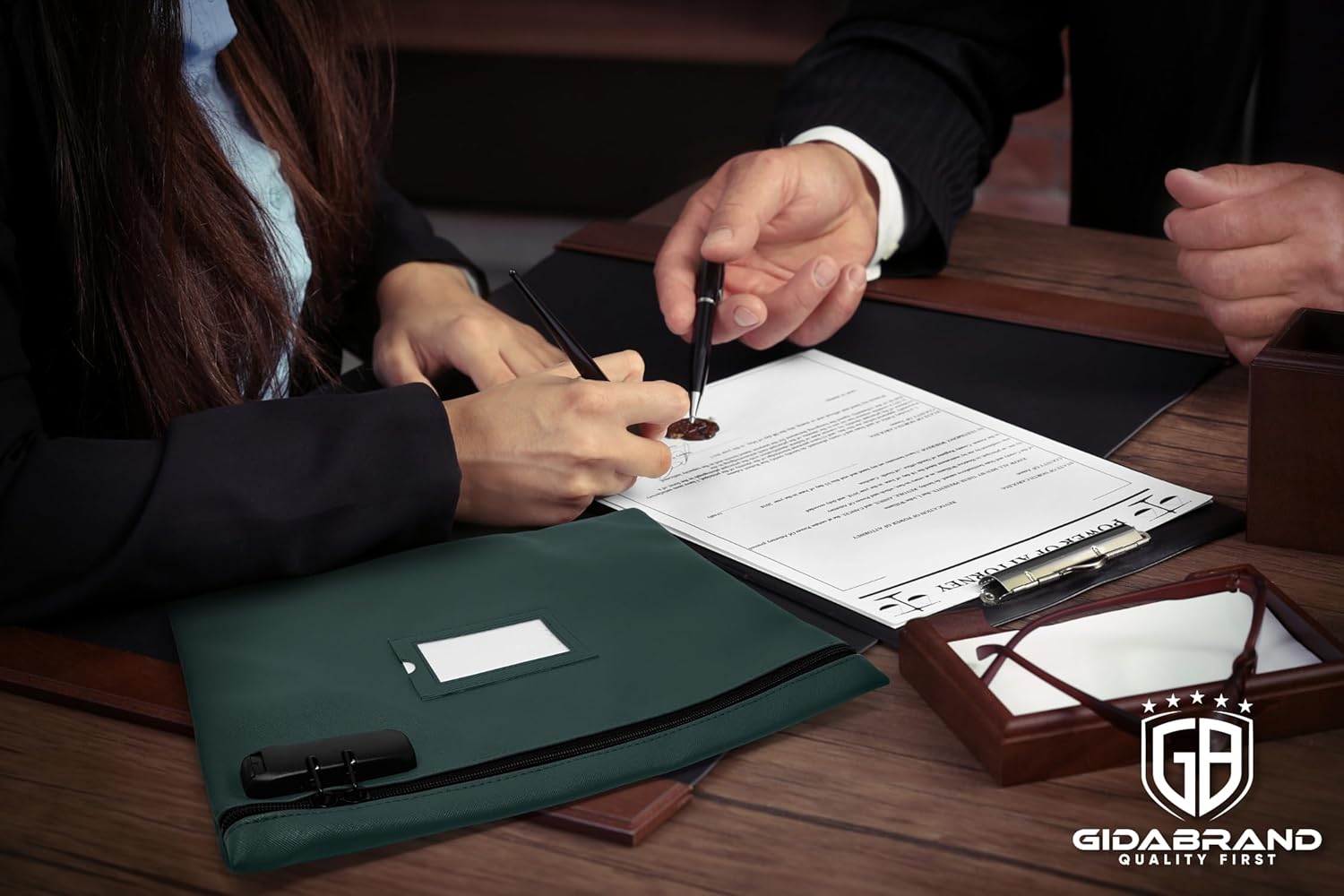 Notary Bag with Lock | 14x11 inch | Green | Zipper Notary Supplies Bag | Locking Notary Bag for Notary Kit, Stamp, Embosser, Ink Pad, and Valuables | Locking Document Bag | Journal Carrying Case