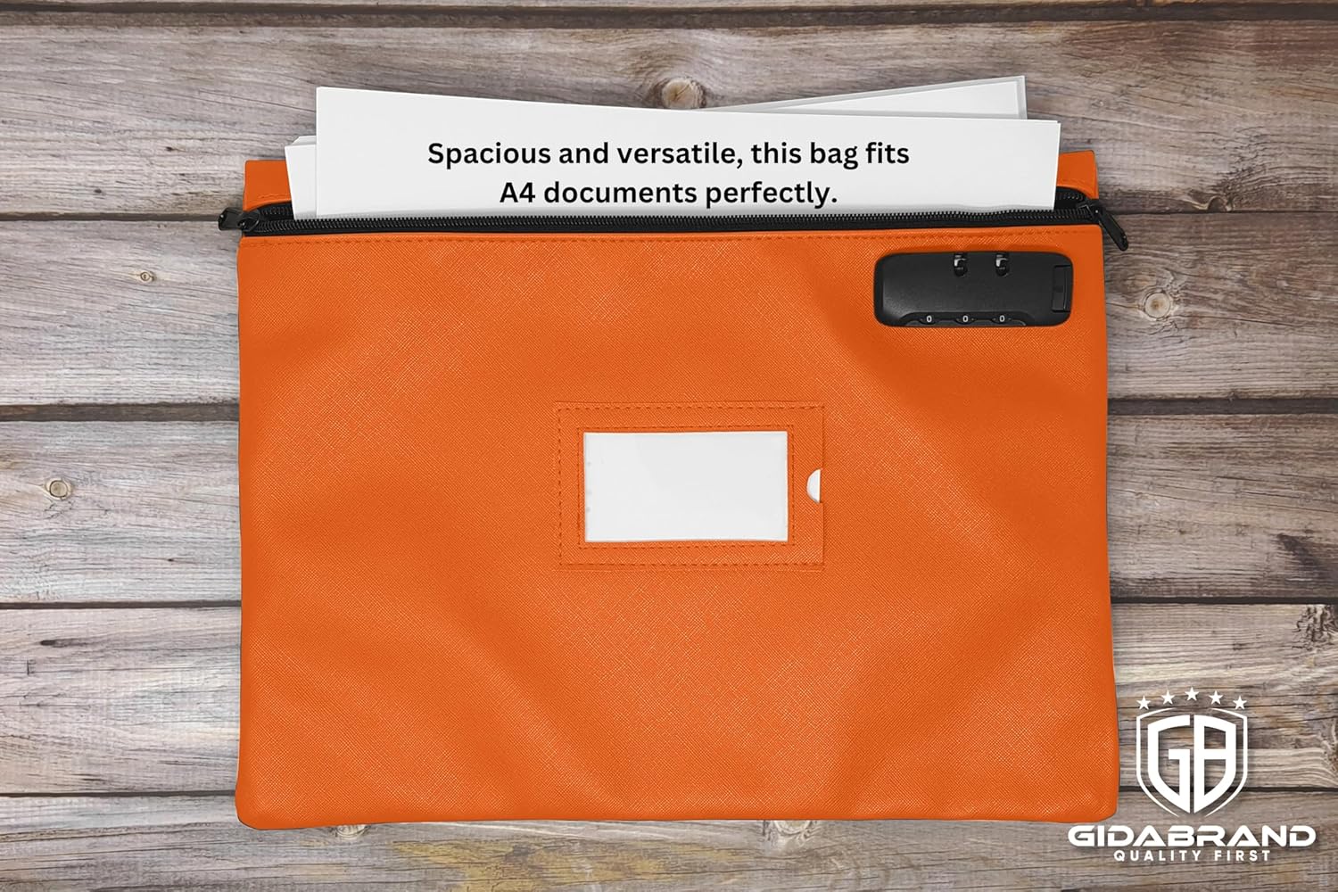 Orange Notary Bag with Lock | 14x11 inch | Zipper Supplies Bag | Locking Document Case for Notary Kit, Stamp, Embosser, Ink Pad, and Valuables