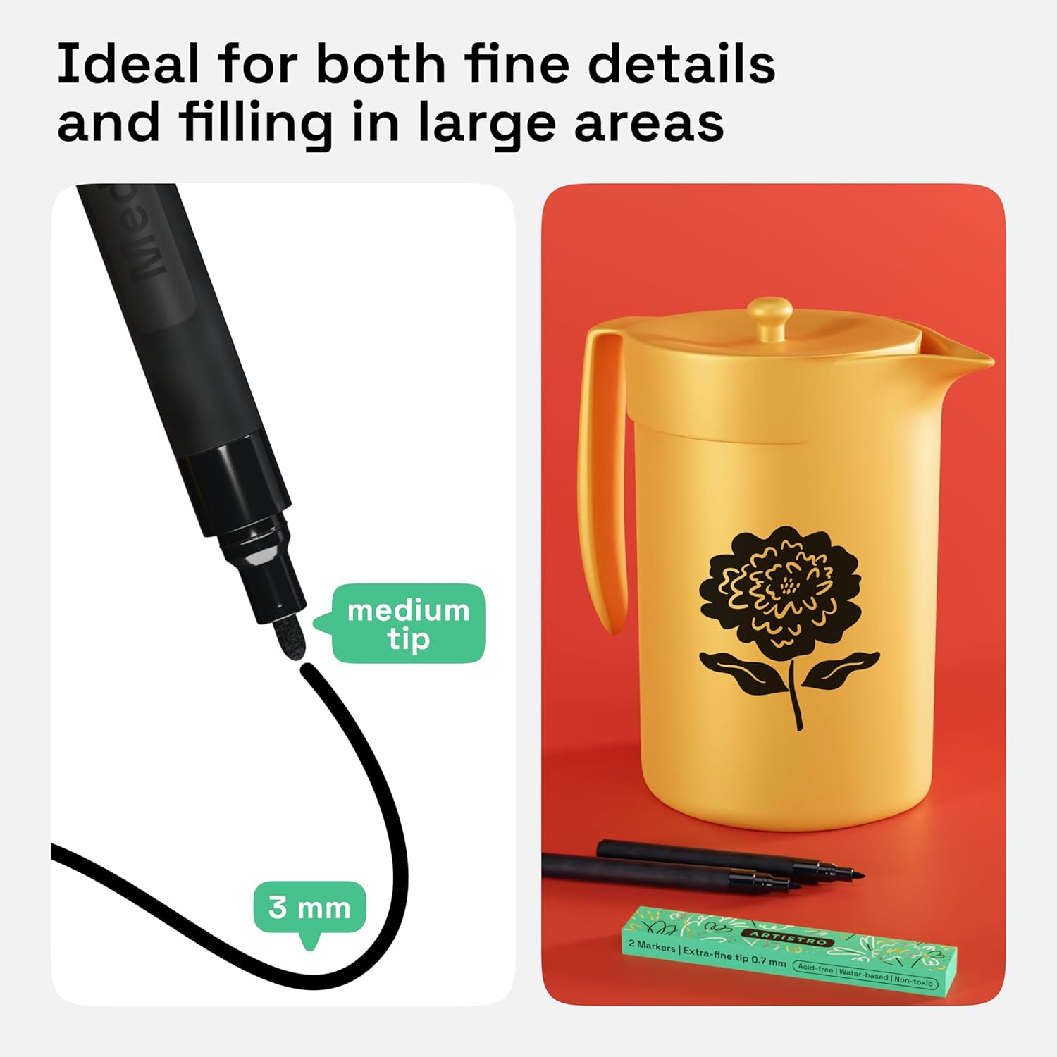- PERFECT SIZE: These medium fine tip paint pens are perfect for when you just need 2 pens for finishing touches on your art projects. Get your Artistro paint pens today!