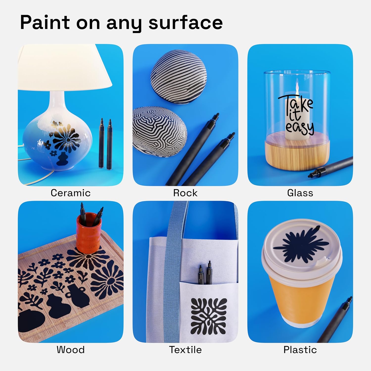- MULTI-USE: Use these acrylic paint pens for rock painting, sneaker painting, or glass painting. You can also use these paint markers for canvas, metal, pottery, plastic, terracotta, outlining, lettering, adding labels, and more!