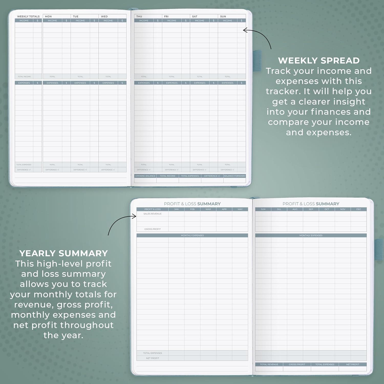 - SWITCH TO EFFICIENT & STRESS-FREE ACCOUNTING: This accounting book is undated and lasts a whole year and has 113 pages, including 53 weekly views, an annual summary, empty note pages, and, at the back, a spacious pocket for receipts.