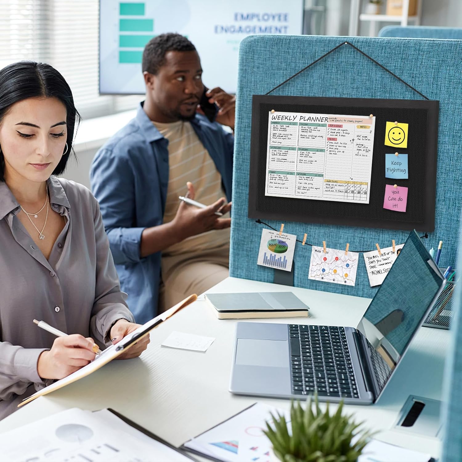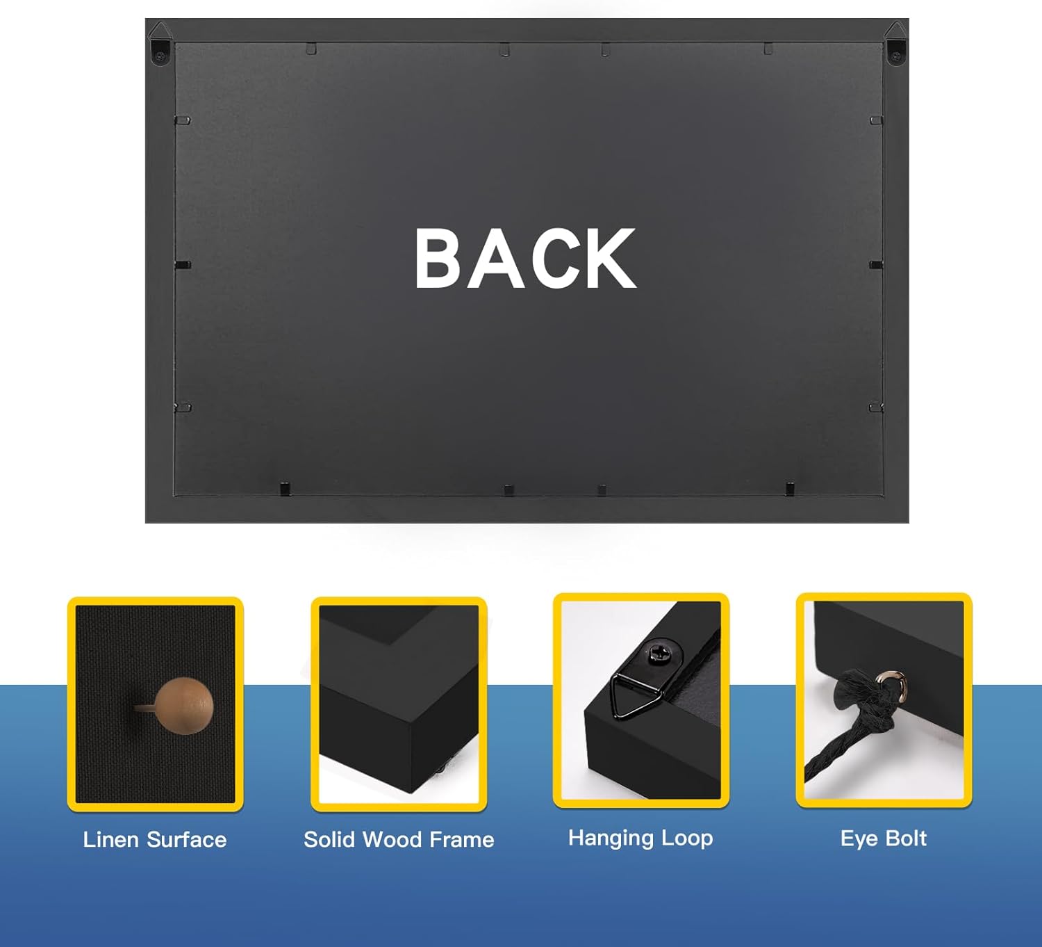 - 【Stylish Black Linen Design】-This bulletin board consists of a Black Linen surface and a black wooden frame. Equipped with 10 pins , the uniform tone gives it a premium and stylish look. It looks great whether displayed on a podium or hung on a wall at home, school, office or dormitory. If you are looking for a stylish vision board, it will be a good choice.
